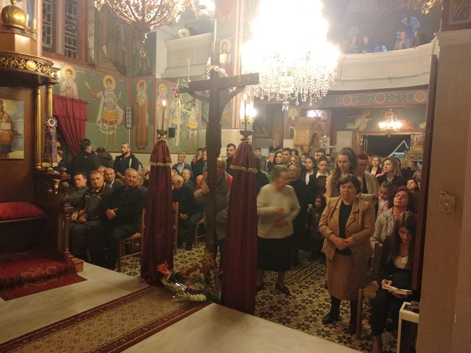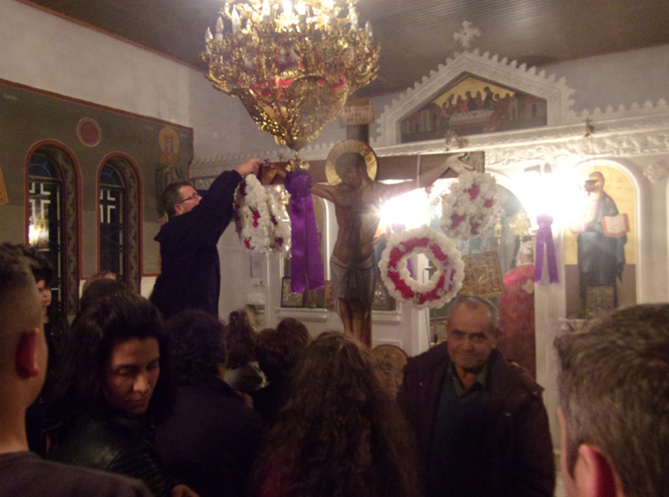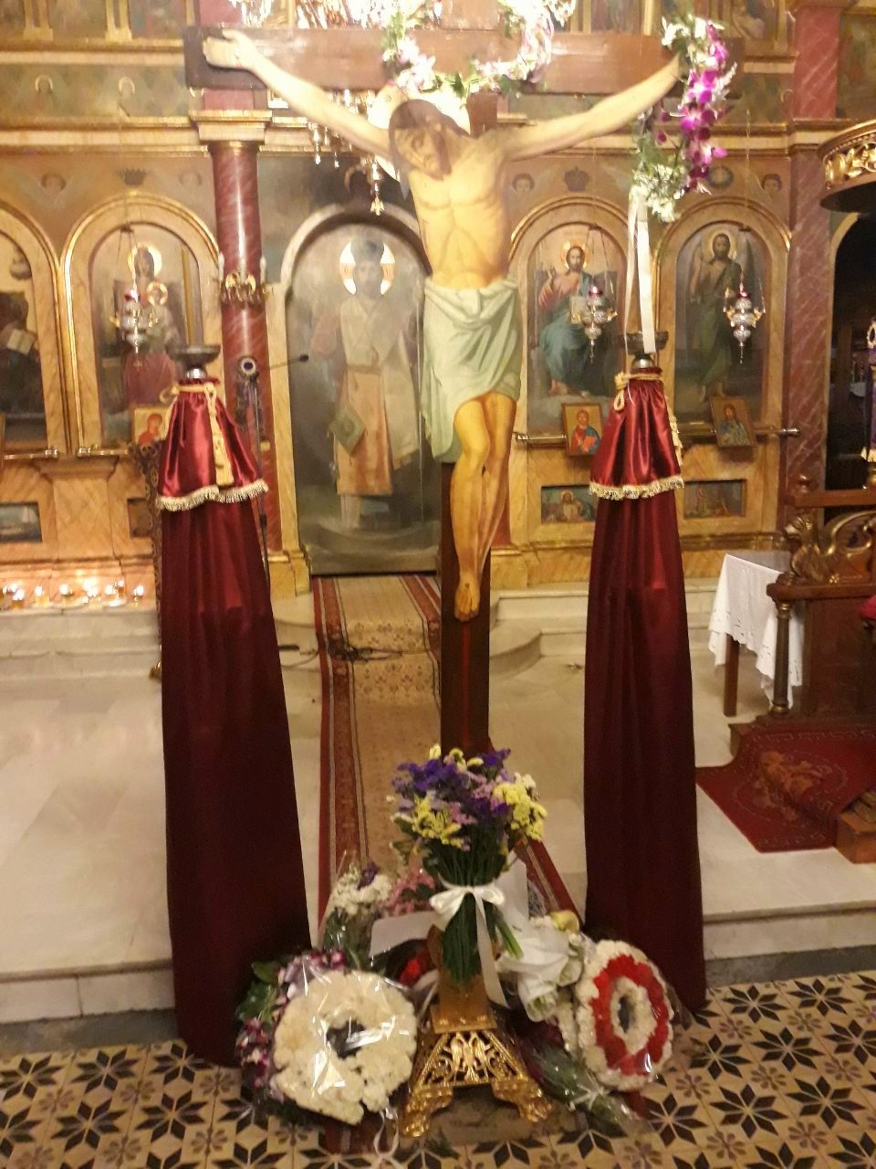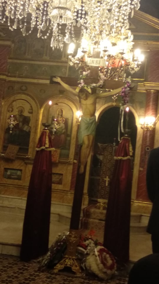 Ανάμεσα στο 5ο και το 6ο Ευαγγέλιο ψάλθηκε το αντίφωνο «Σήμερον κρεμάται επί ξύλου…» και ο Εσταυρωμένος λιτανεύεται από τους ιερείς.
