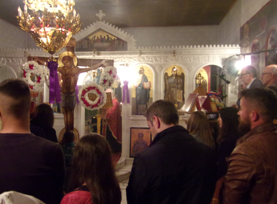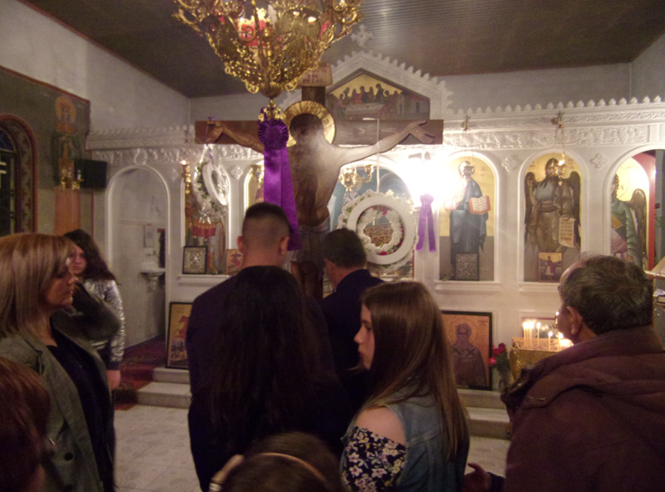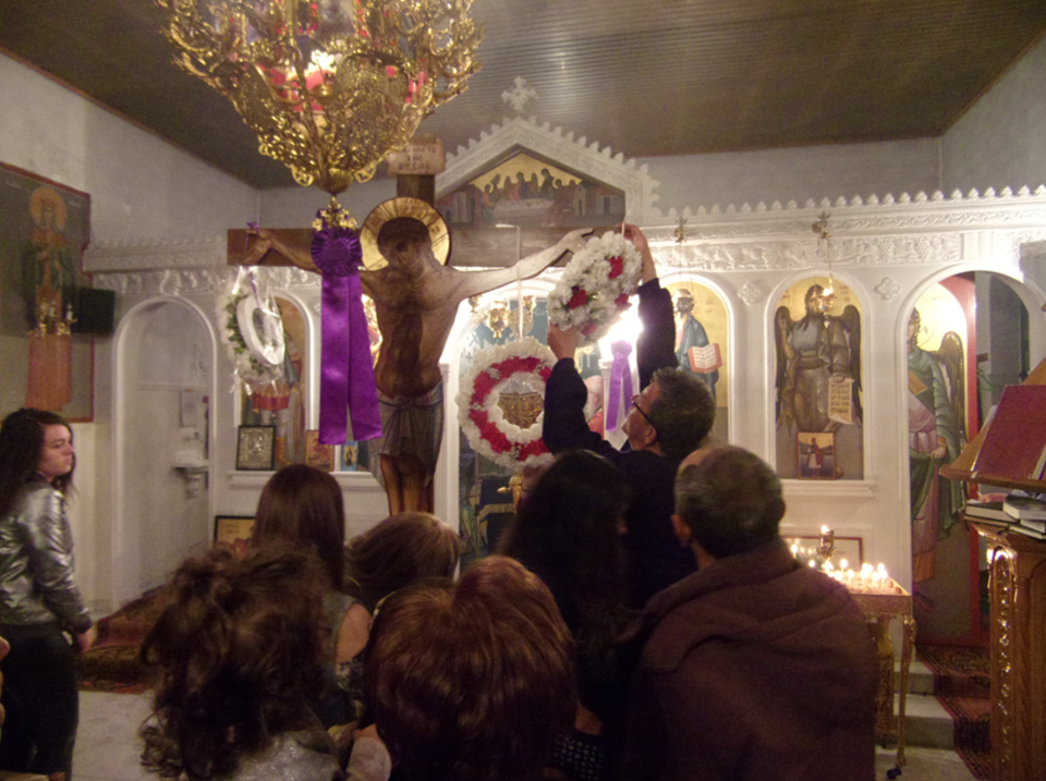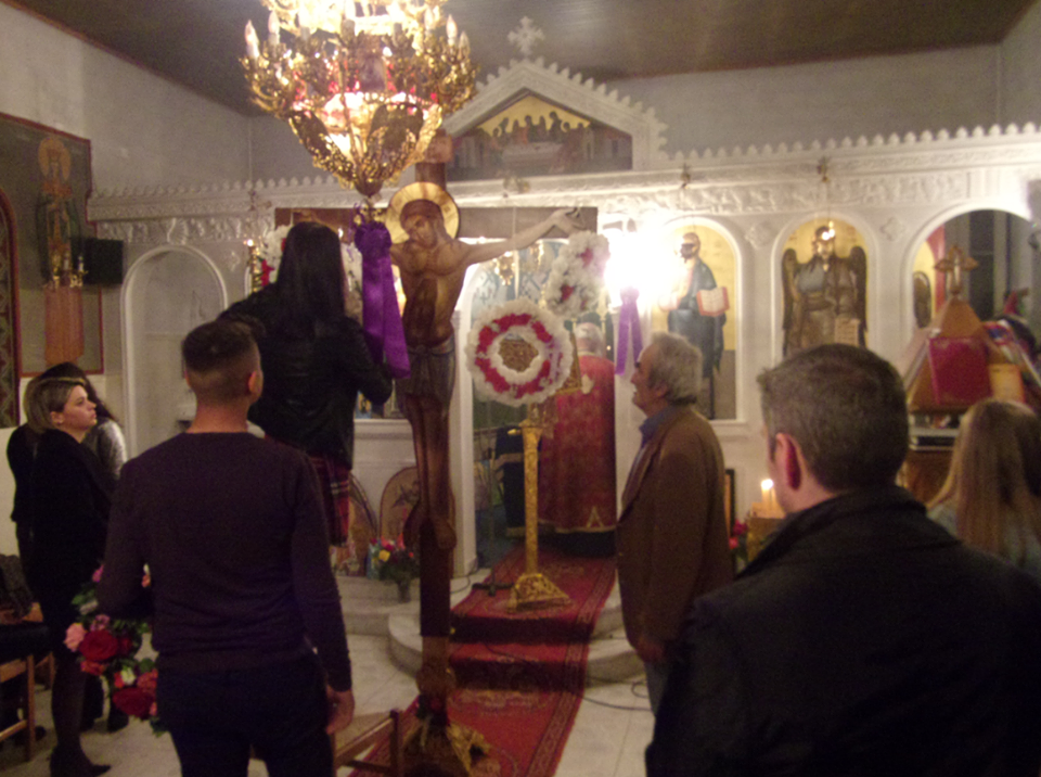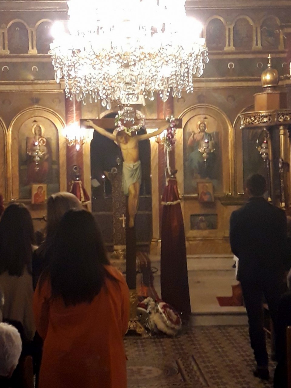 Ανάμεσα στο 5ο και το 6ο Ευαγγέλιο ψάλθηκε το αντίφωνο «Σήμερον κρεμάται επί ξύλου…» και ο Εσταυρωμένος λιτανεύεται από τους ιερείς.