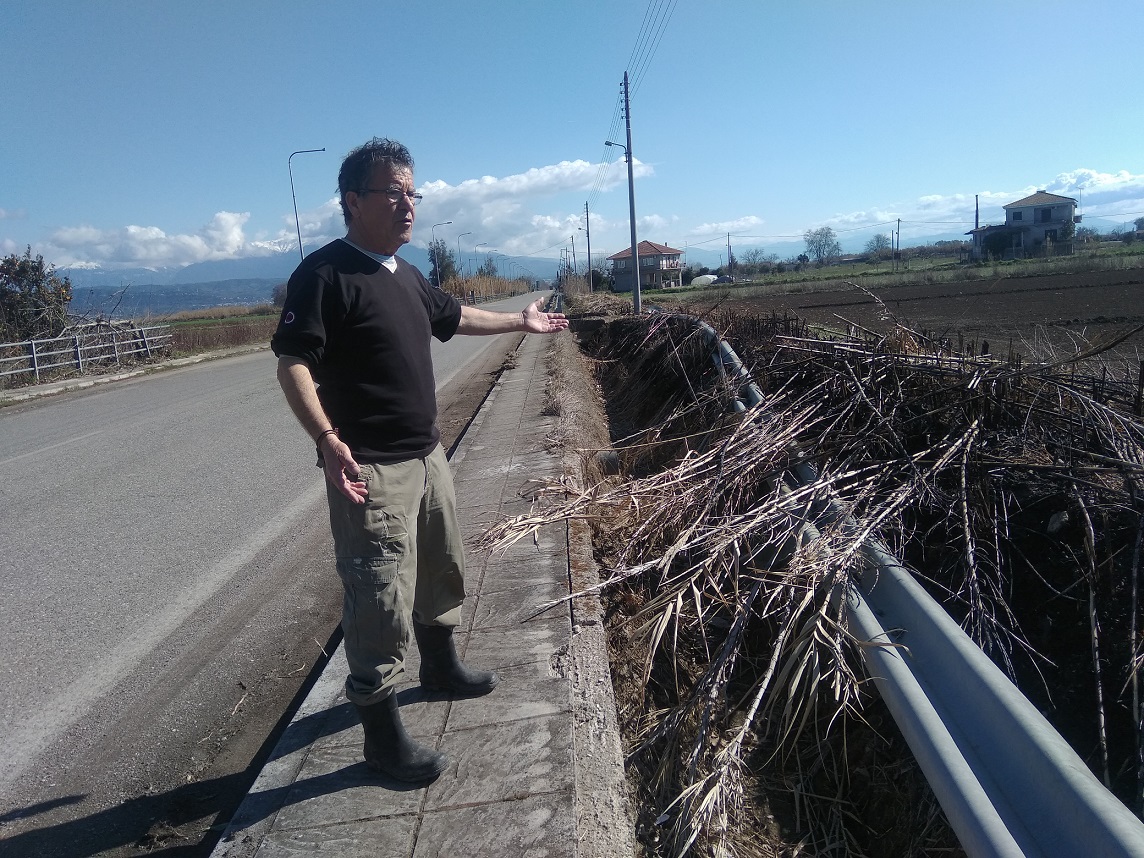 Μας έδειξε επίσης, τα φρεάτια που με την πρώτη δυνατή βροχή δεν αποστραγγίζουν τα νερά και πλημμυρίζει επικίνδυνα ο δρόμος, ενώ μας υπέδειξε και την παρακείμενη προστατευτική μπάρα, η οποία μετά από ένα τροχαίο ατύχημα που συνέβη 4-5 χρόνια πριν, στράβωσε και ακόμη βρίσκεται πεσμένη στο αυλάκι… Ελπίζει και εύχεται κάποια στιγμή να αποκατασταθεί η ζημιά…