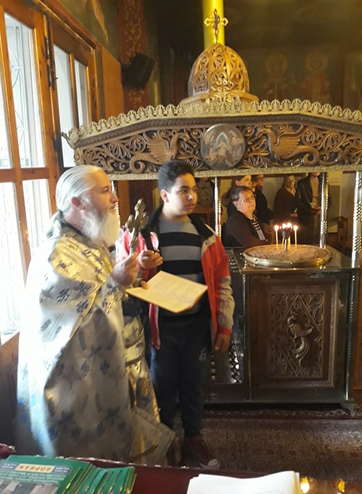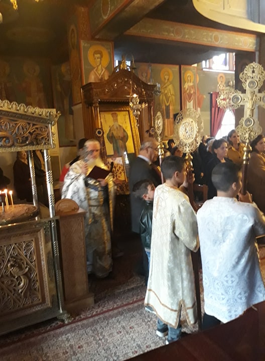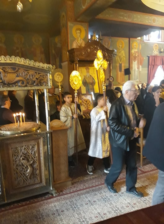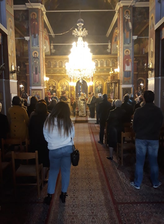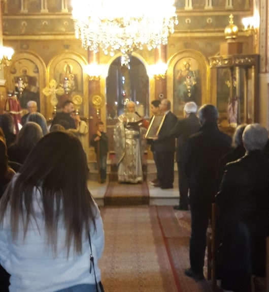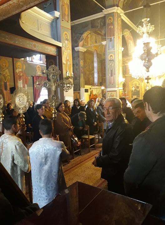 Ο πατήρ Θ. Αθανασόπουλος, συνοδεία των ιεροψαλτών, των επιτρόπων του ναού και των πιστών που κρατούσαν τις εικόνες που έφεραν από τα σπίτια τους, διάβασε εντός του ναού, παρακλήσεις και ύμνους για τη σημερινή γιορτή της Ορθοδοξίας.