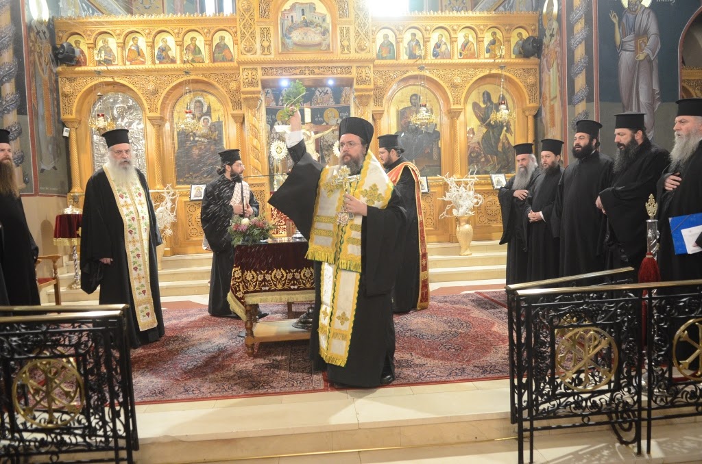 Αρχικά τελέσθηκε η ακολουθία του Αγιασμού και στη συνέχεια ο Πρωτοσύγκελλος της Ιεράς Μητροπόλεως αρχιμ. Επιφάνιος Καραγεώργος προσφώνησε εκ μέρους του ιερού κλήρου εκφράζοντας την χαρά όλων για την υποδοχή του νέου πνευματικού τους Πατέρα και την επιθυμία όλων να συστρατευθούν με τα οράματα και τις επιθυμίες του Επισκόπου τους.