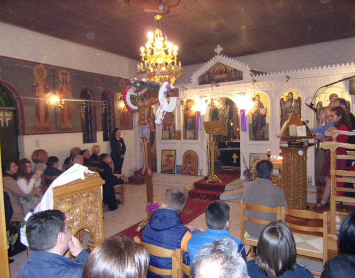 Μέσα σε κλίμα κατάνυξης οι πιστοί, άνθρωποι κάθε ηλικίας, προσήλθαν στο ναό για να προσκυνήσουν τον Εσταυρωμένο. Το πρωί τελέσθηκε ο Εσπερινός της Μεγάλης Παρασκευής μαζί με τη Θεία Λειτουργία του Μεγάλου Βασιλείου, ενώ το βράδυ τελέσθηκε ο Όρθρος της Μεγάλης Παρασκευής.