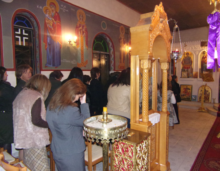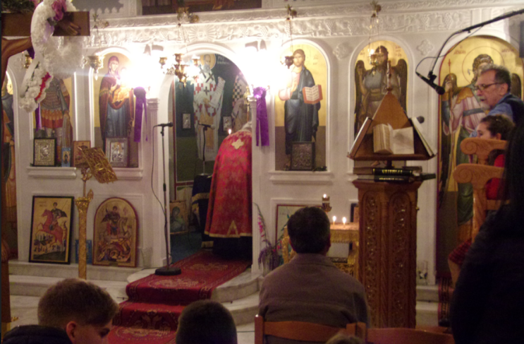 Σήμερα το βράδυ οι γυναίκες κάνουν το στόλισμα του Επιταφίου με λουλούδια, το οποίο θα υποδεχτεί το σώμα του Χριστού την Μεγάλη Παρασκευή το πρωί.