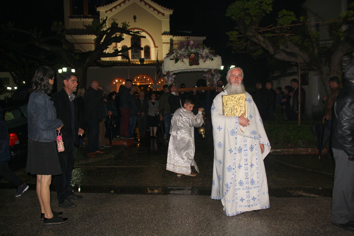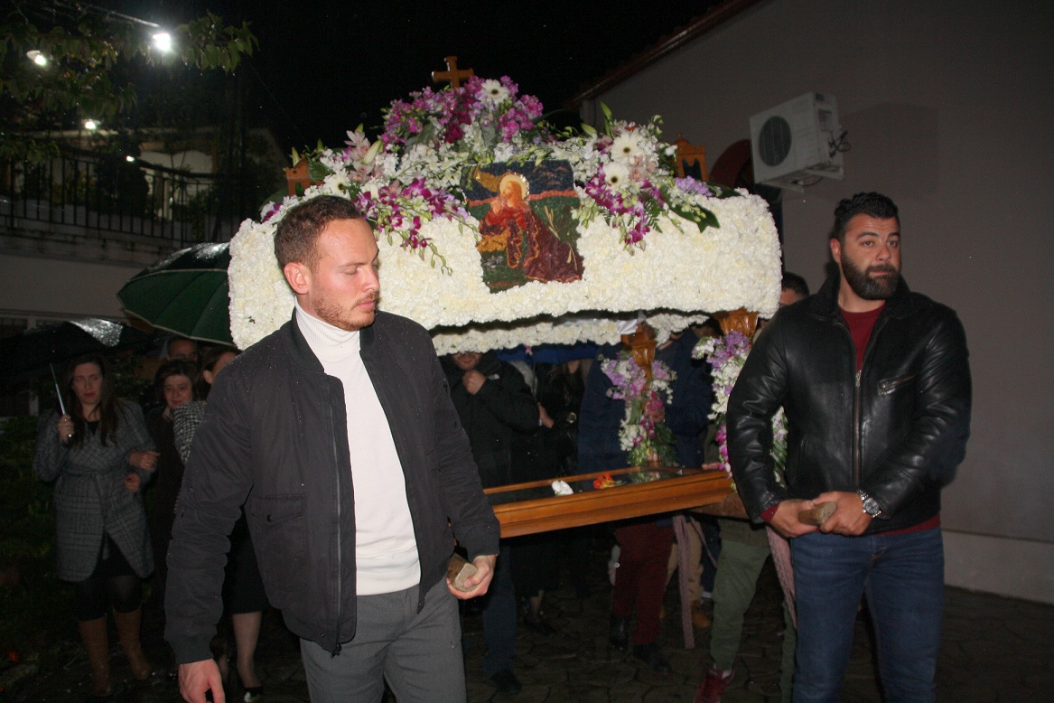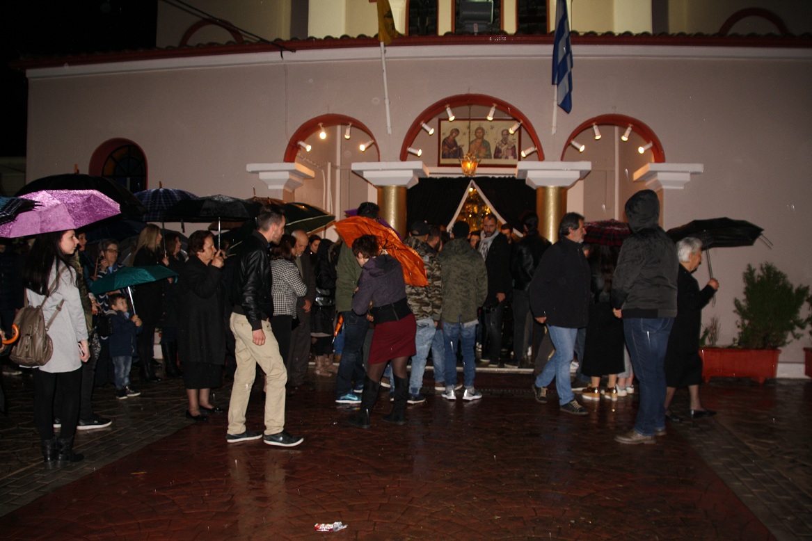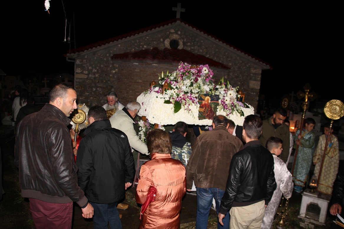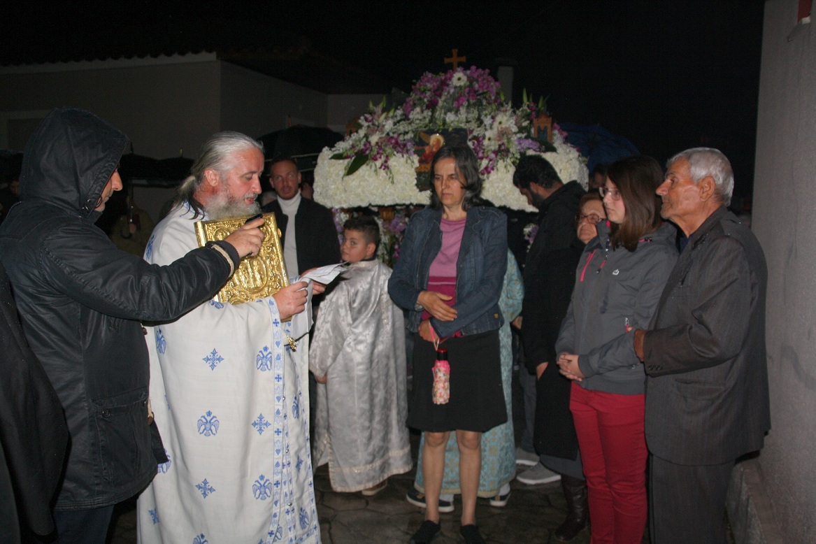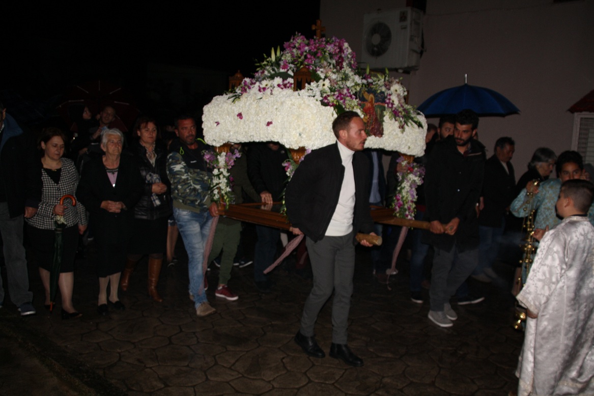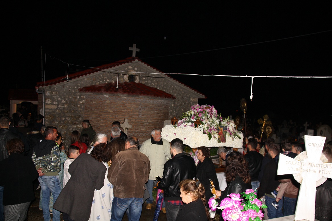 Στη συνέχεια οι πιστοί, κρατώντας αναμμένα κεριά, ακολούθησαν την περιφορά του Επιταφίου γύρω από το ναό, ο οποίος ήταν στολισμένος με πολύχρωμα λουλούδια και κατευθύνθηκαν προς το εξωκλήσι του παλαιού Αγ. Νικολάου.