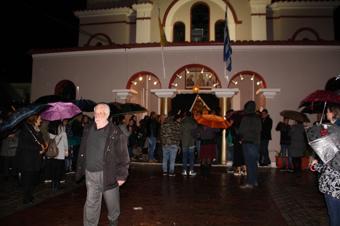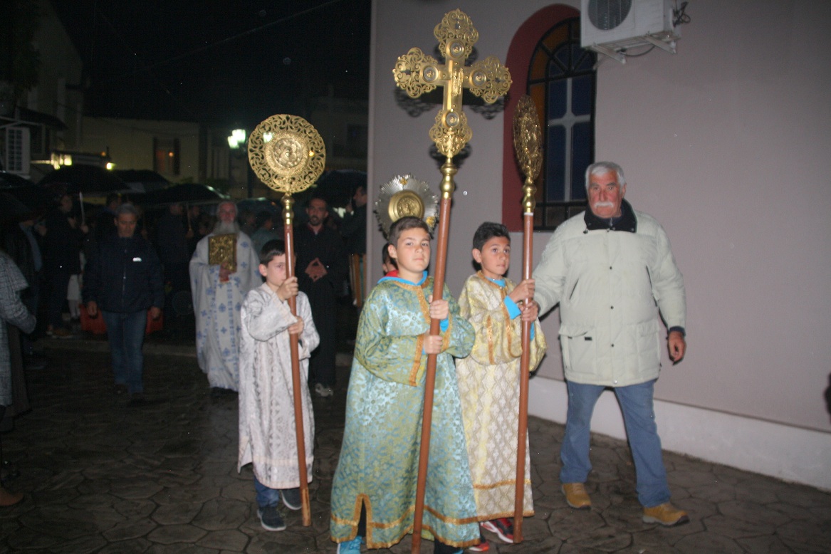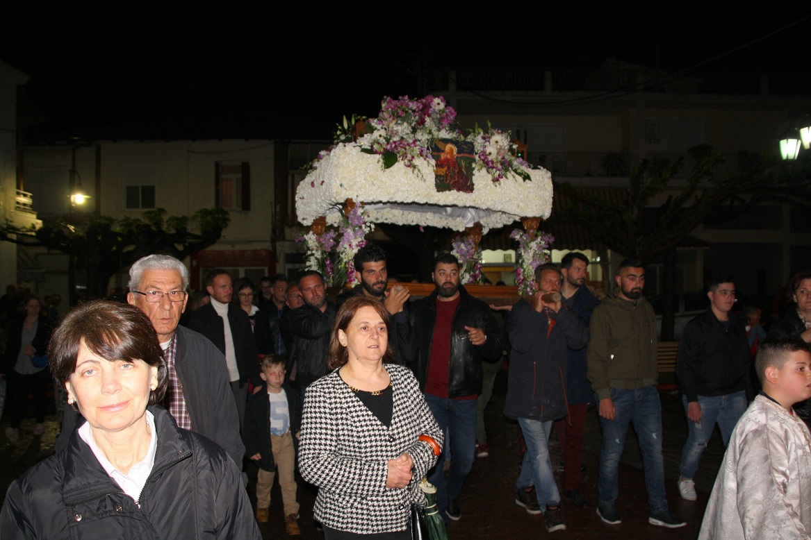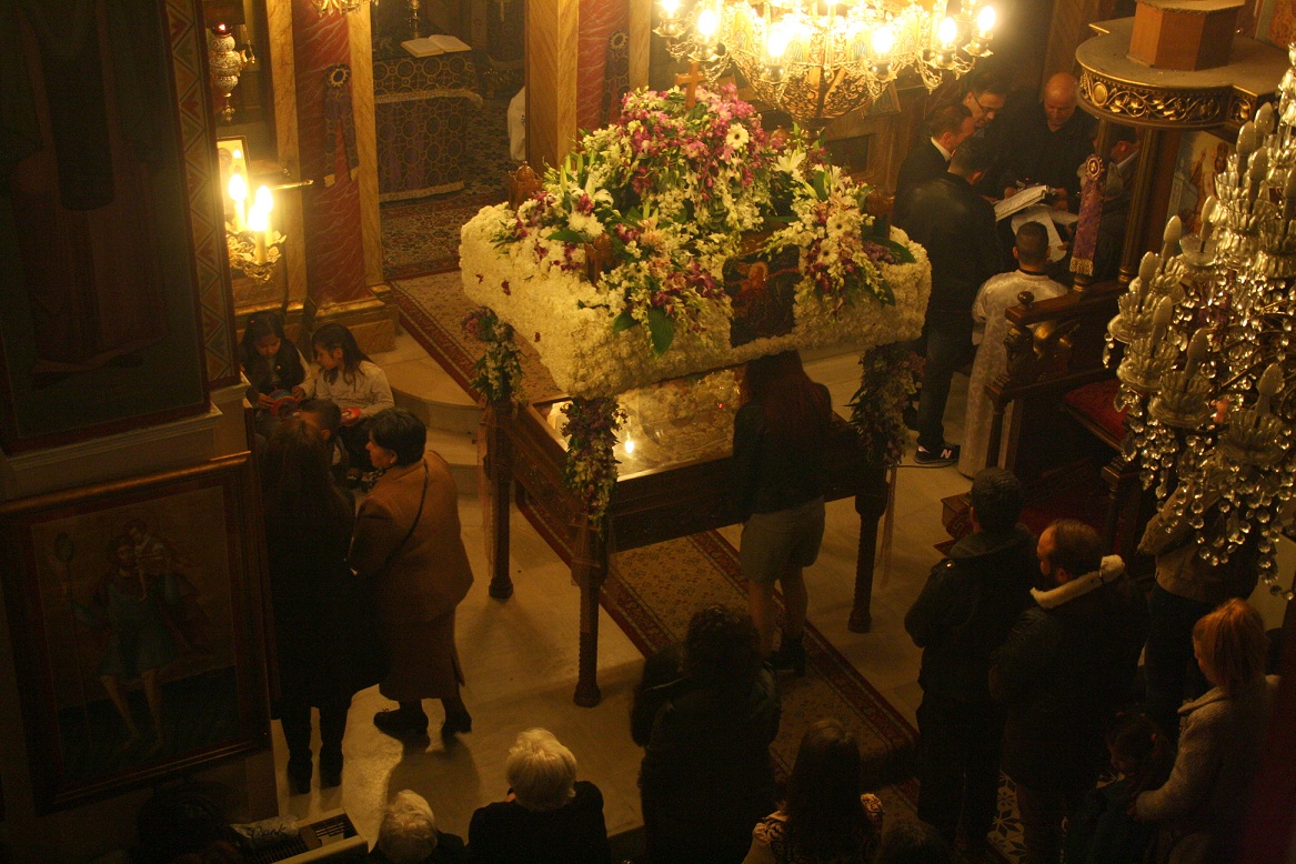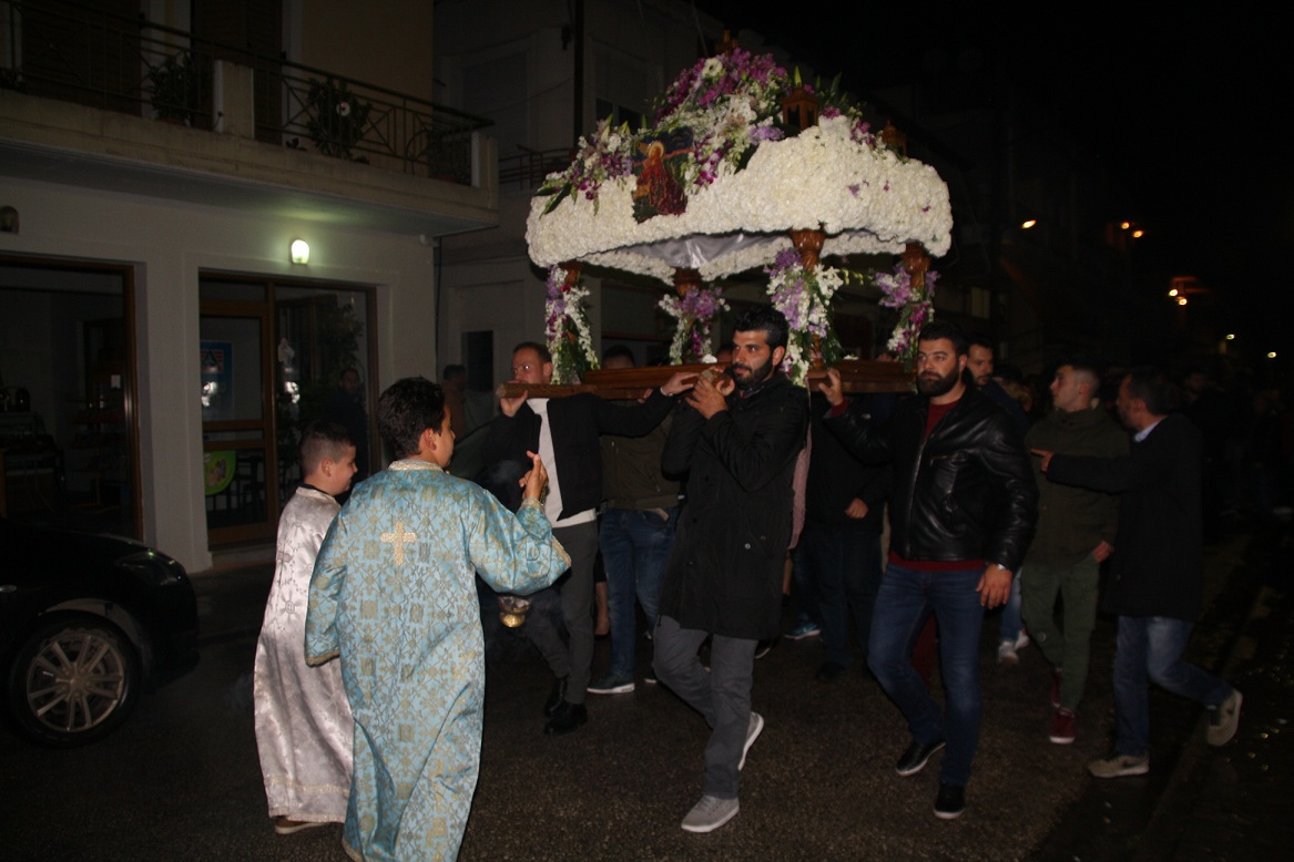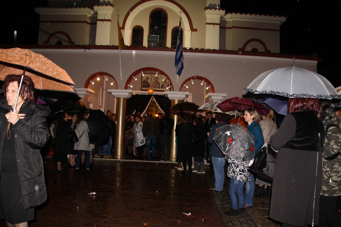 Στη συνέχεια οι πιστοί, κρατώντας αναμμένα κεριά, ακολούθησαν την περιφορά του Επιταφίου γύρω από το ναό, ο οποίος ήταν στολισμένος με πολύχρωμα λουλούδια και κατευθύνθηκαν προς το εξωκλήσι του παλαιού Αγ. Νικολάου.