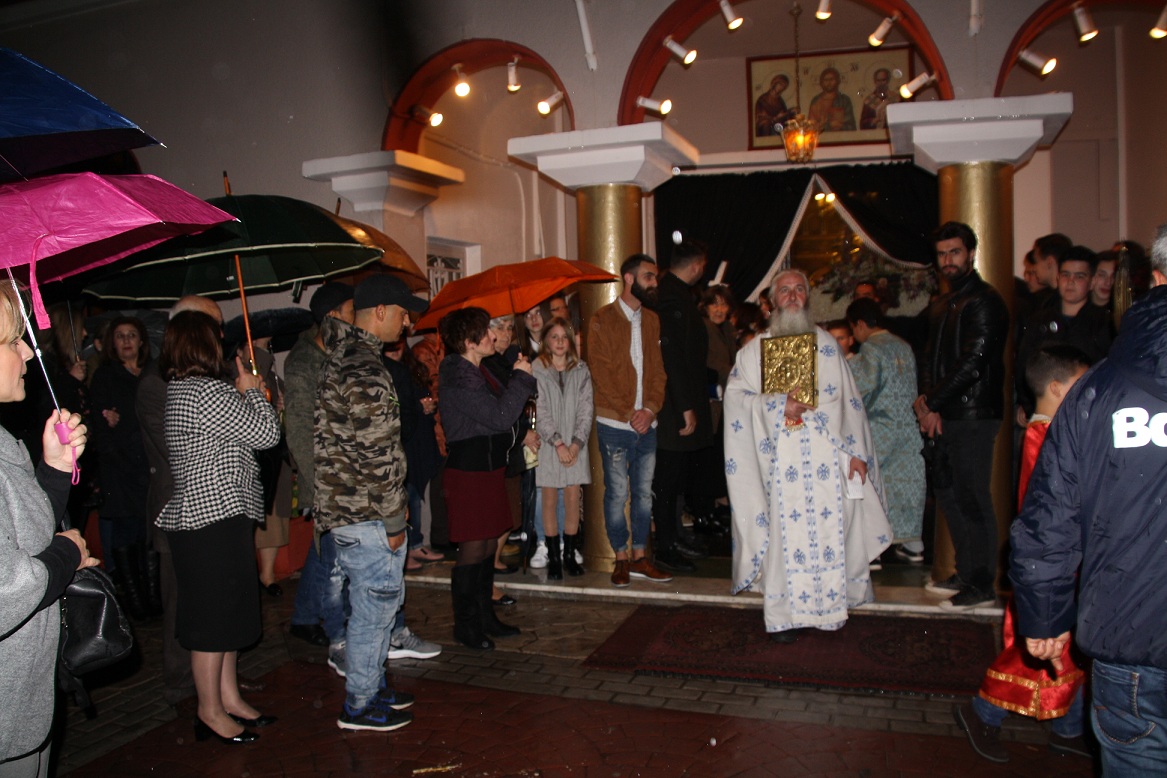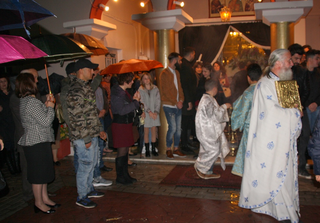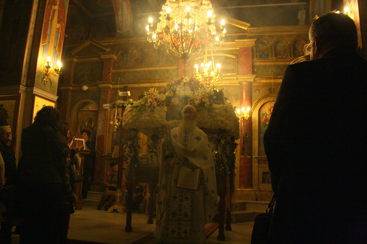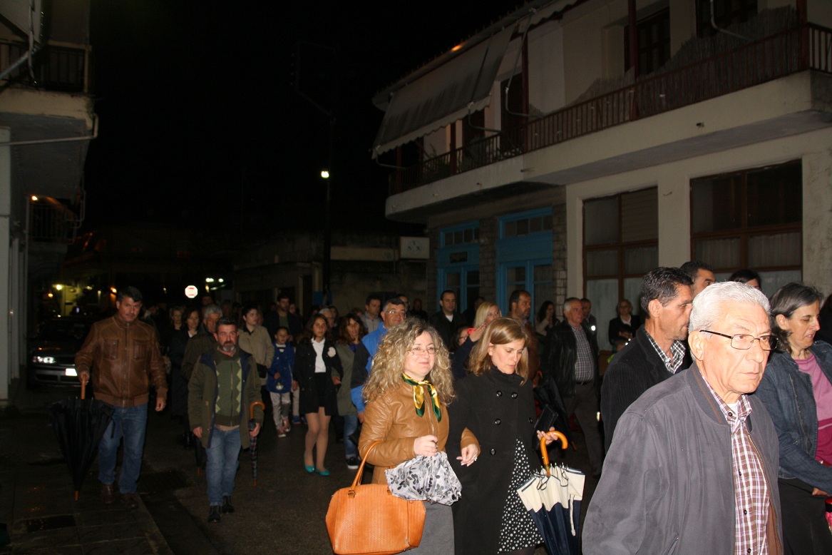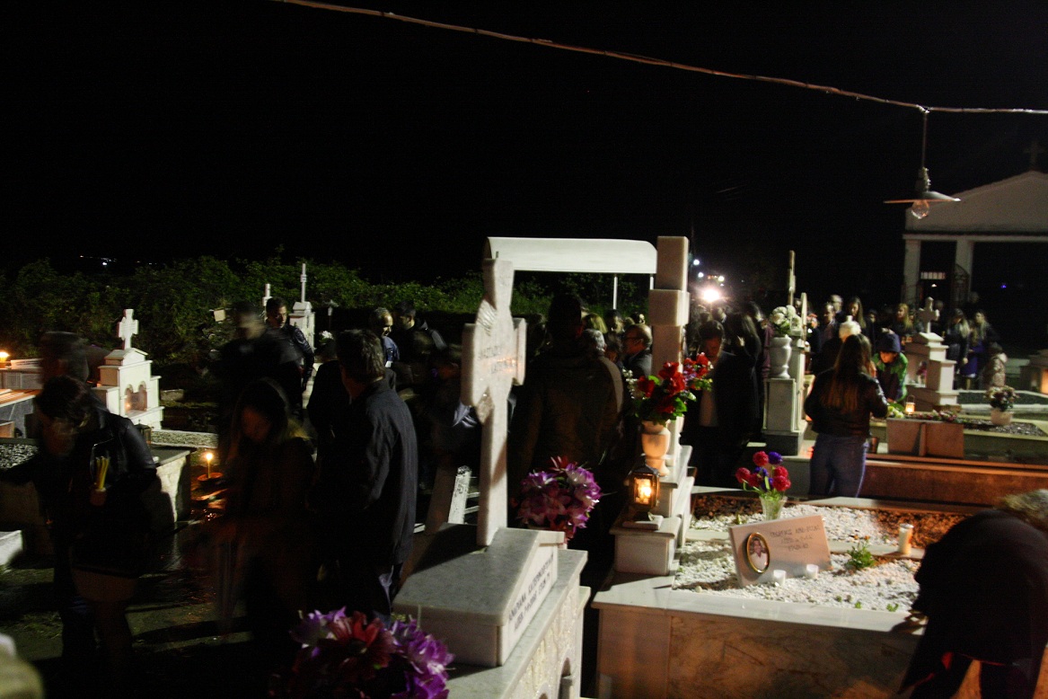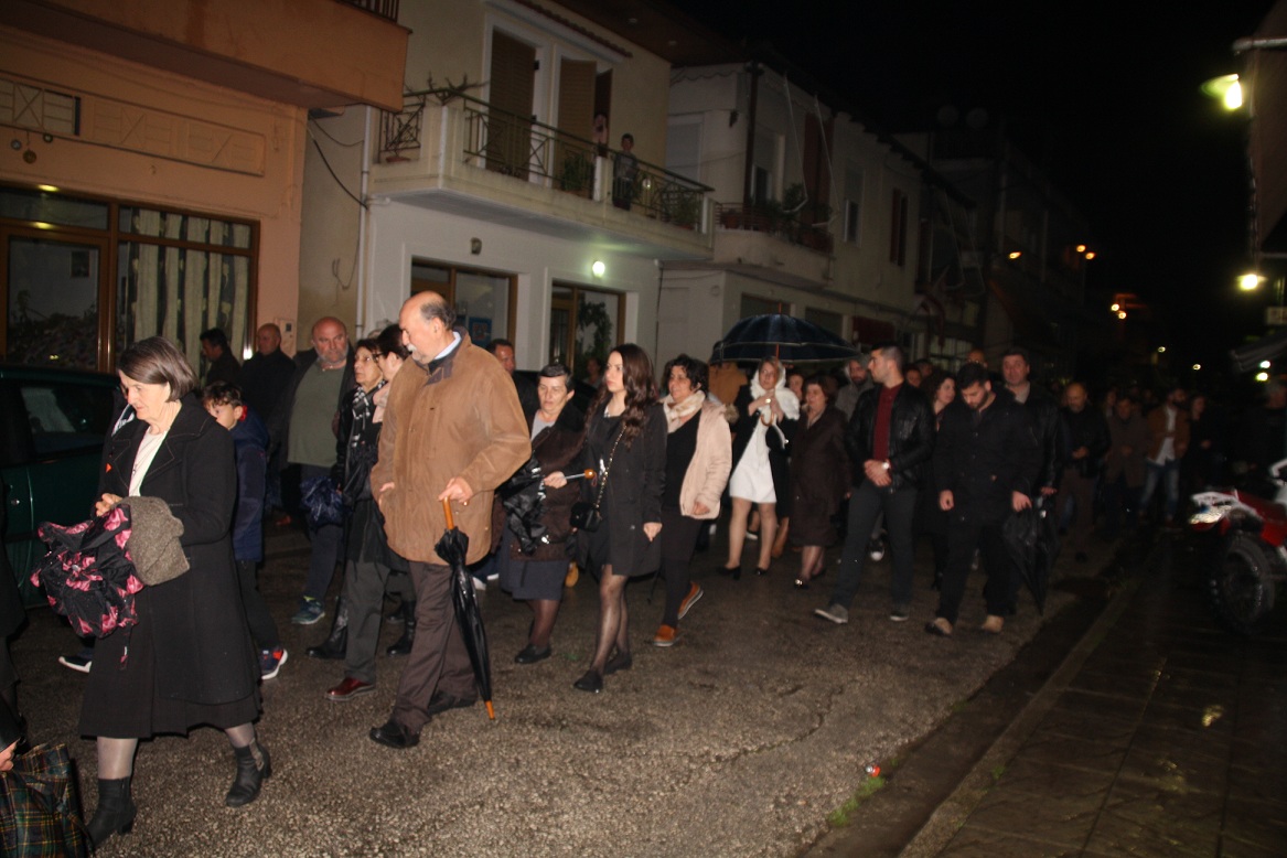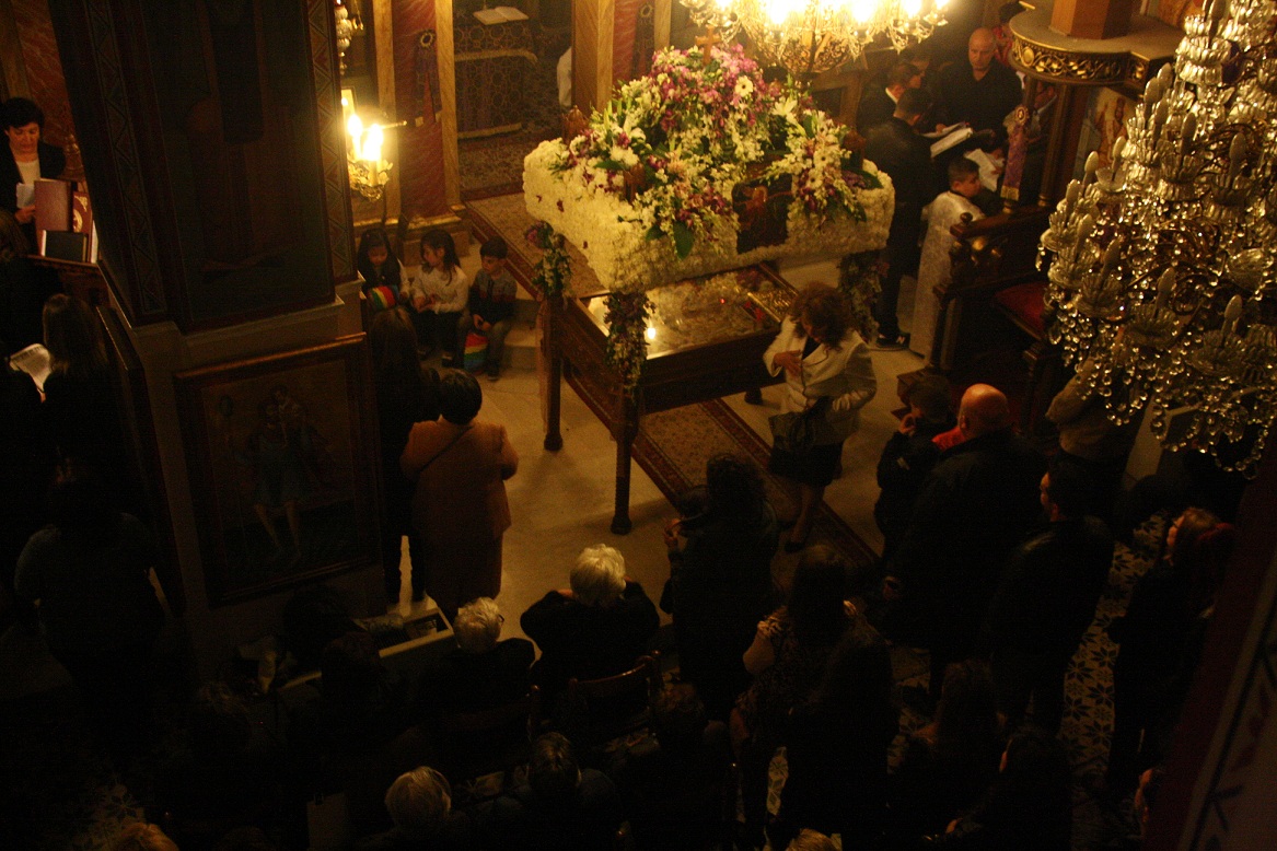 Στη συνέχεια οι πιστοί, κρατώντας αναμμένα κεριά, ακολούθησαν την περιφορά του Επιταφίου γύρω από το ναό, ο οποίος ήταν στολισμένος με πολύχρωμα λουλούδια και κατευθύνθηκαν προς το εξωκλήσι του παλαιού Αγ. Νικολάου.