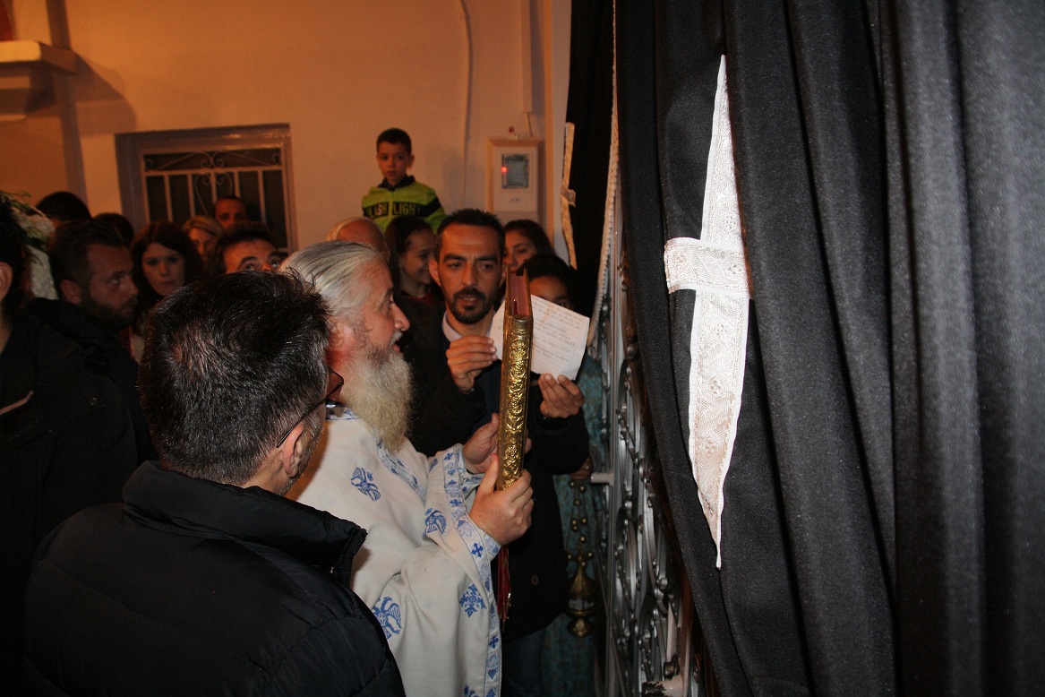 Στην επιστροφή της πομπής του Επιταφίου, τηρήθηκε το έθιμο μπροστά στην είσοδο του ναού όπου γίνεται η αναπαράσταση της σκηνής των «κεκλεισμένων θυρών»: Ο ιερέας παριστάνει τον Χριστό ενώπιον των πυλών της Κόλασης και ψέλνει τους στίχους του Δαυίδ «άρατε πύλας, οι άρχοντες υμών και επάρθητε πύλαι αιώνιοι και εισελεύσεται ο Βασιλεύς της δόξας» ενώ ακούγεται μια φωνή, που παριστάνει το διάβολο και προσπαθεί να εμποδίσει την είσοδο. Τελικά ο ιερέας σπρώχνει ορμητικά την πόρτα του ναού και μπαίνει μέσα ως λυτρωτής των αμαρτωλών.
