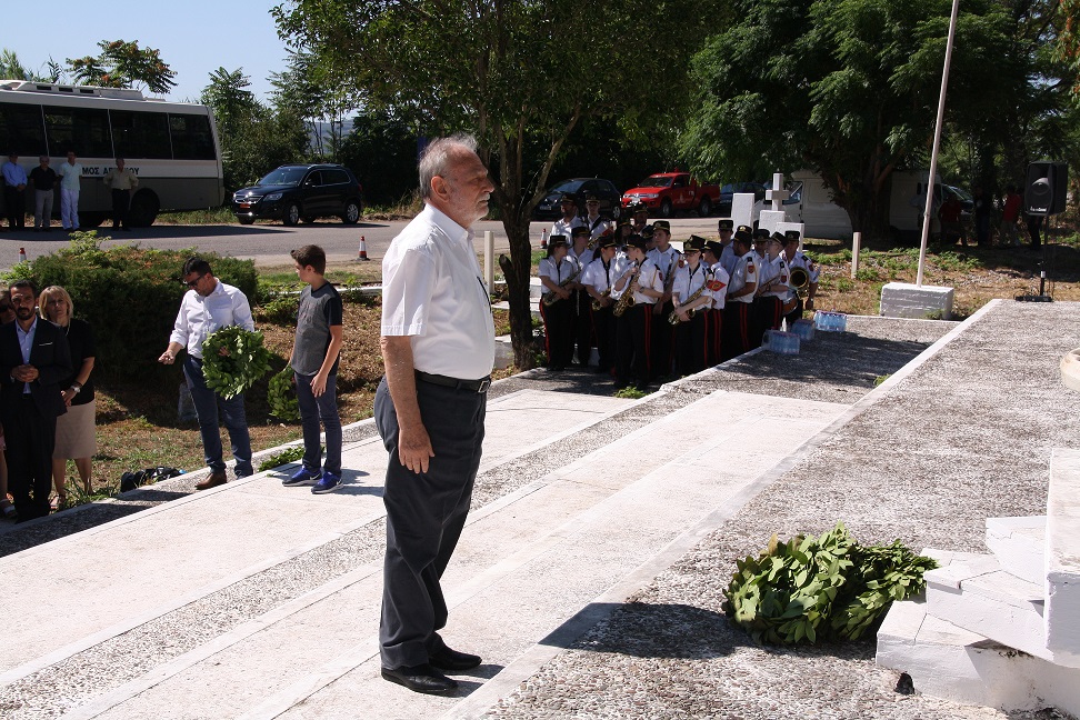 Λίγο έξω από το χωριό, στο Μνημείο των Πεσόντων που υπάρχει για να θυμίζει σε όλους την υπέρτατη θυσία των πατριωτών μας, εψάλλει από τον αιδεσιμότατο π. Θεοδόση Αθανασόπουλο, επιμνημόσυνη δέηση και κατόπιν ακολούθησε ομιλία από την Αντιδήμαρχο Πολιτισμού, κ. Μ. Παπαγεωργίου, η οποία αναφέρθηκε στο ιστορικό των γεγονότων, ενώ παράλληλα τόνισε την αναγκαιότητα να ενθυμούμαστε τους αγώνες των προγόνων μας, η Ελλάδα να αποκτήσει το κύρος που τις πρέπει και το ¨φως¨ του ελληνικού πολιτισμού να φωτίσει όλον τον κόσμο!