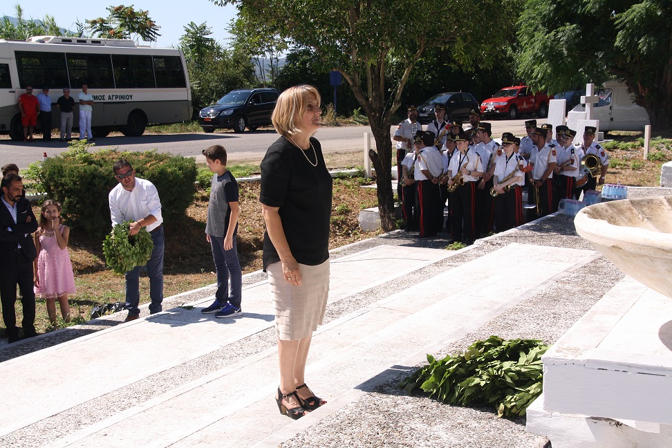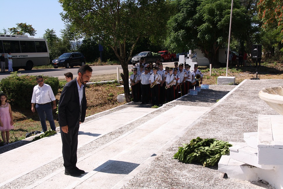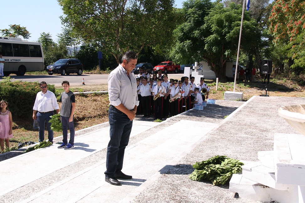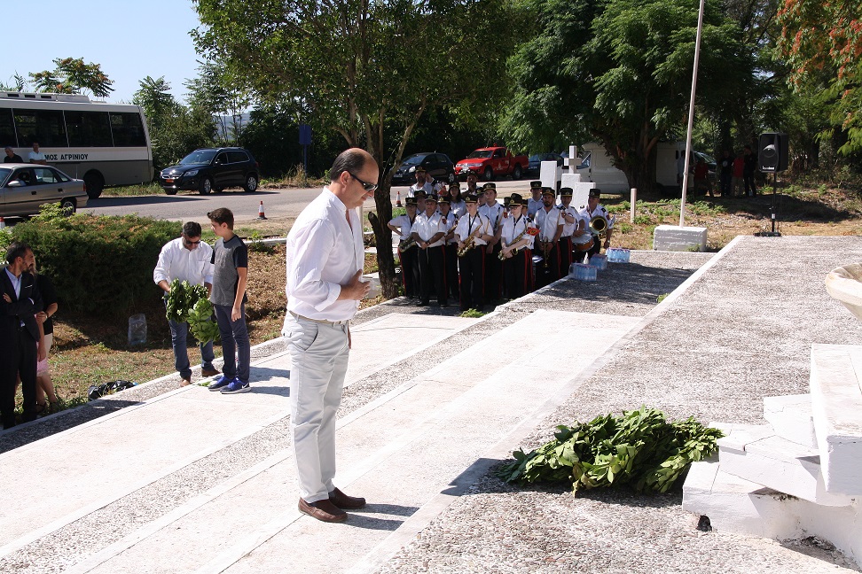 Ακολούθως διαβάστηκε το προσκλητήριο νεκρών για τους 59 πατριώτες και στη συνέχεια έγινε κατάθεση στεφάνων από τις επίσημες αρχές, φορείς, συλλόγους και συγγενείς των θυμάτων, ενώ η Φιλαρμονική του Δήμου Αγρινίου απέδωσε τιμές.