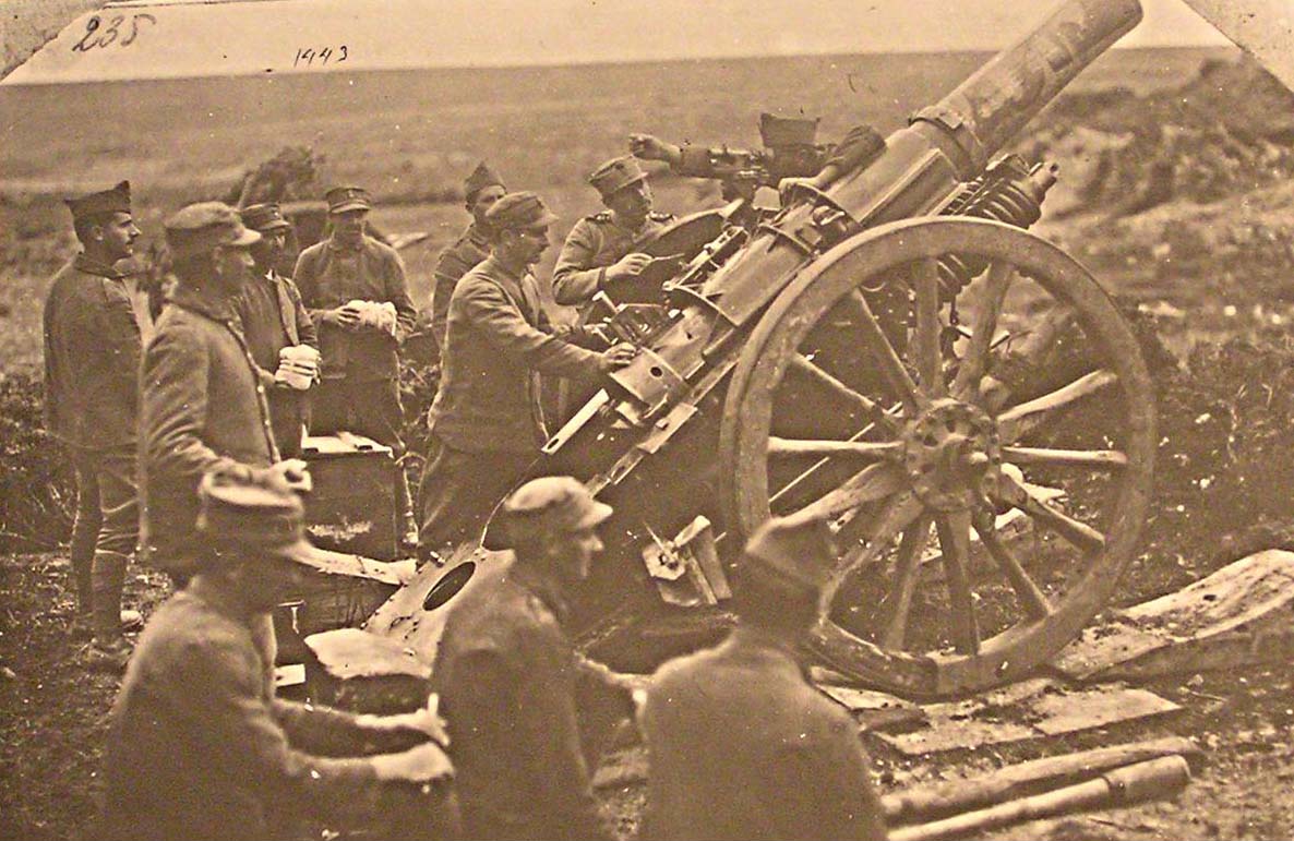 1) Στοιχείο πυροβολικού της Ανεξάρτητης Μεραρχίας κατά την ώρα βολής με Πυροβόλο Armstrong των 6 ιντσών.