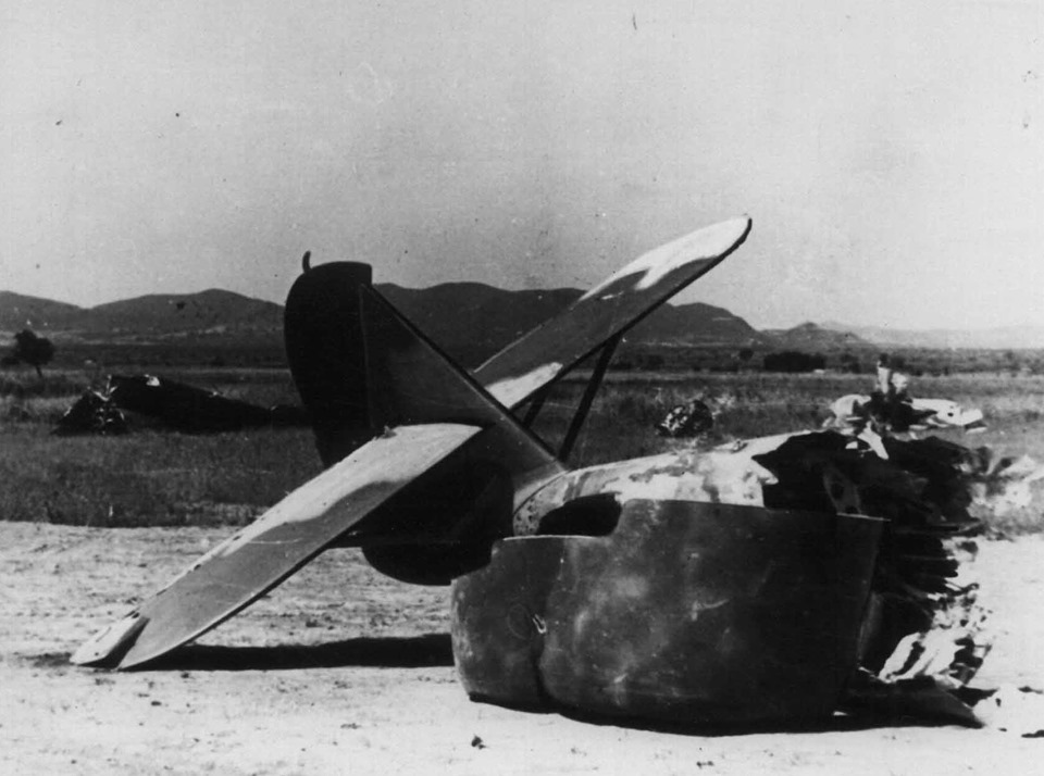 - Φωτογραφία: Απρίλιος 1941, αεροδρόμιο Αγρινίου από το Ιταλικό Κρατικό Αρχείο. Τεκμήριo του Ελληνοαλβανικού Μετώπου 1940-41 στο Αγρίνιο. Είναι το κατεστραμένο αεροπλάνο του ήρωα, Υποσμηναγού Κυταριόλου Γεωργίου του Νικολάου.