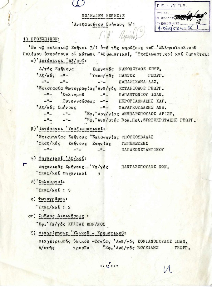 - Πολεμική Έκθεσις Ανεξαρτήτου Σμήνους 3/1. Πατήστε πάνω στον σύνδεσμο:
