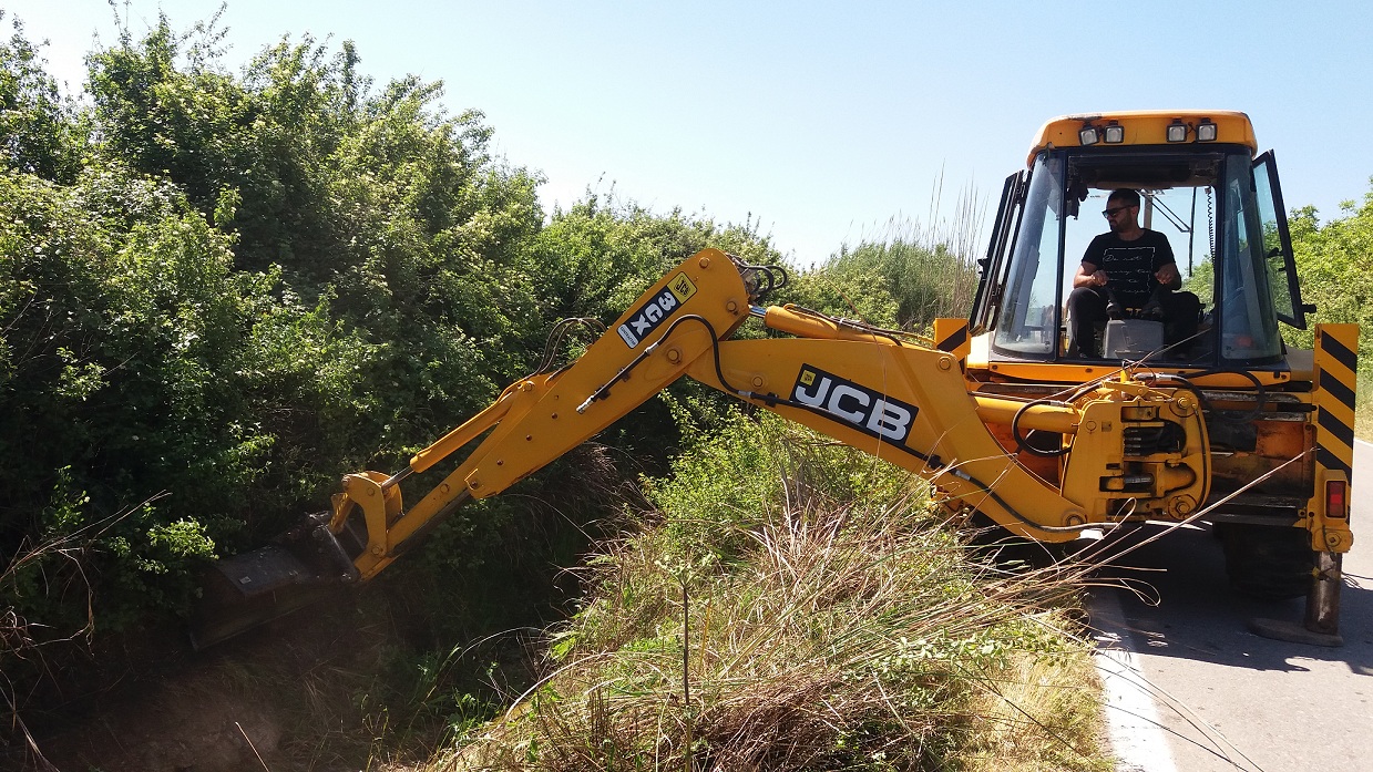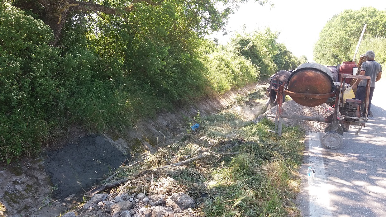 Ειδικό μηχάνημα JCB καθάρισε από χώματα και αγριόχορτα την διώρυγα που βρίσκεται κοντά στο γηπέδου του χωριού, ενώ τεχνικό συνεργείο έριξε τσιμεντοκονίαμα σε κομμάτια που είχαν σπάσει ή αποκολληθεί.
