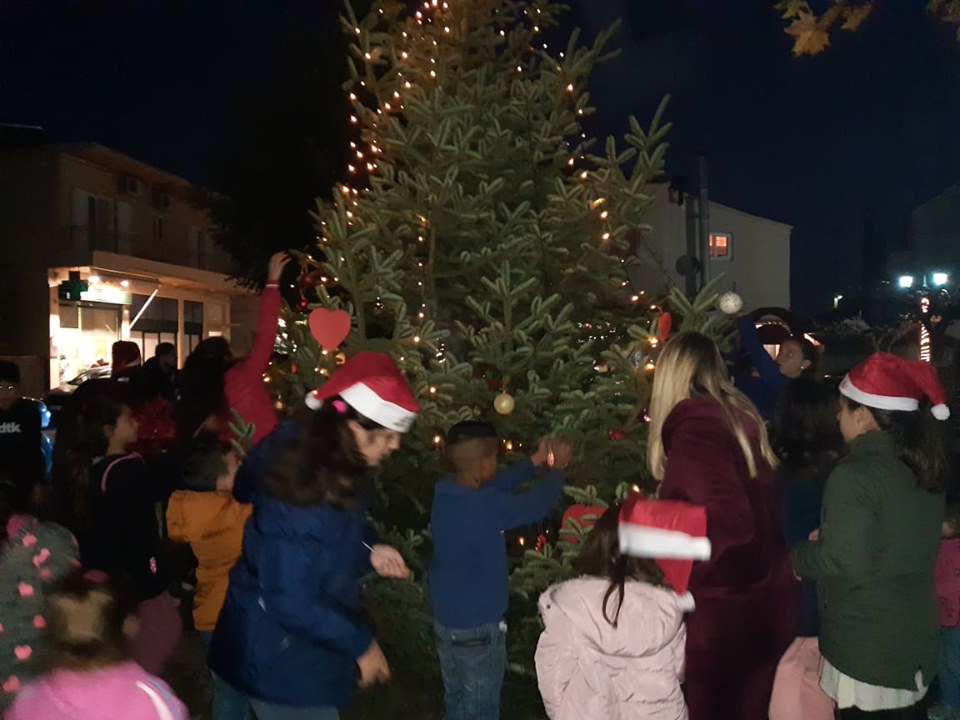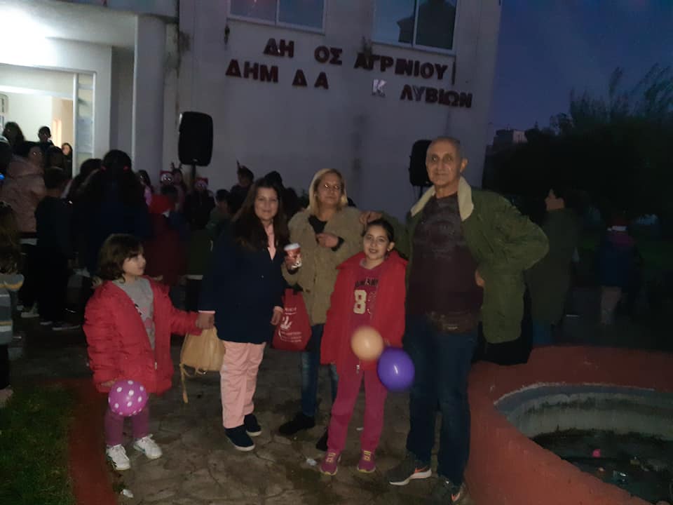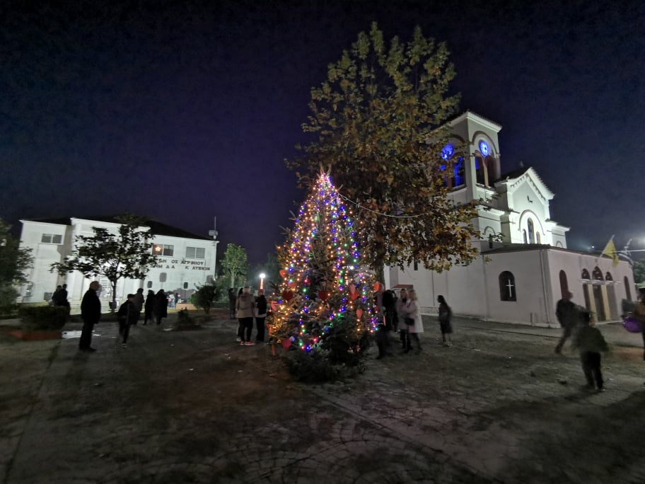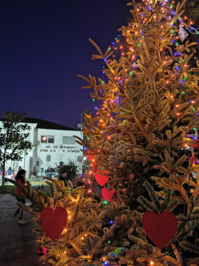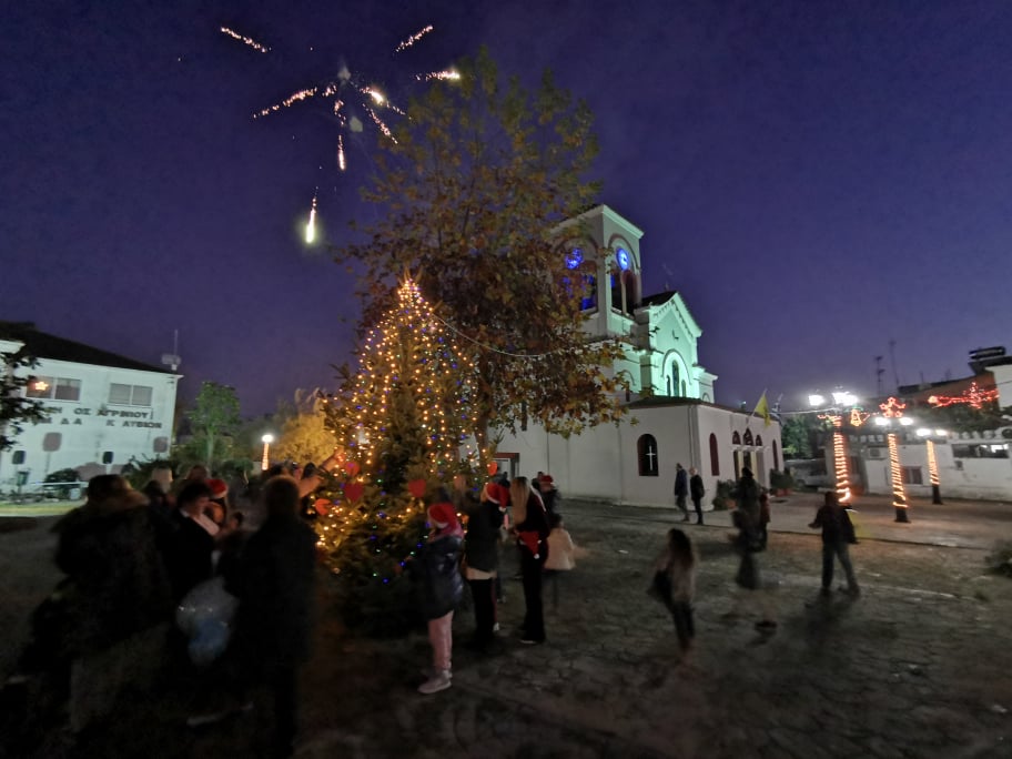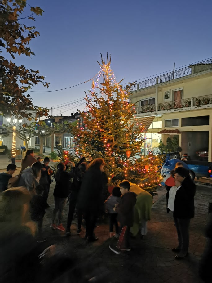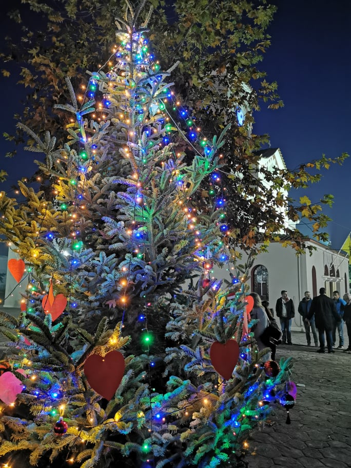 Το μικρό αλλά όμορφο δέντρο φωτίστηκε με λαμπιόνια και στολιδάκια που τοποθέτησαν στα κλαδιά του τα παιδιά του χωριού μας, ενώ ο Αι Βασίλης μοίρασε καραμέλες, γλυκίσματα, μπαλόνια, τρίγωνα για τα κάλαντα και αγιοβασιλιάτικα σκουφάκια, προσφορά του δήμου Αγρινίου και του Συλλόγου Γυναικών Καλυβίων!