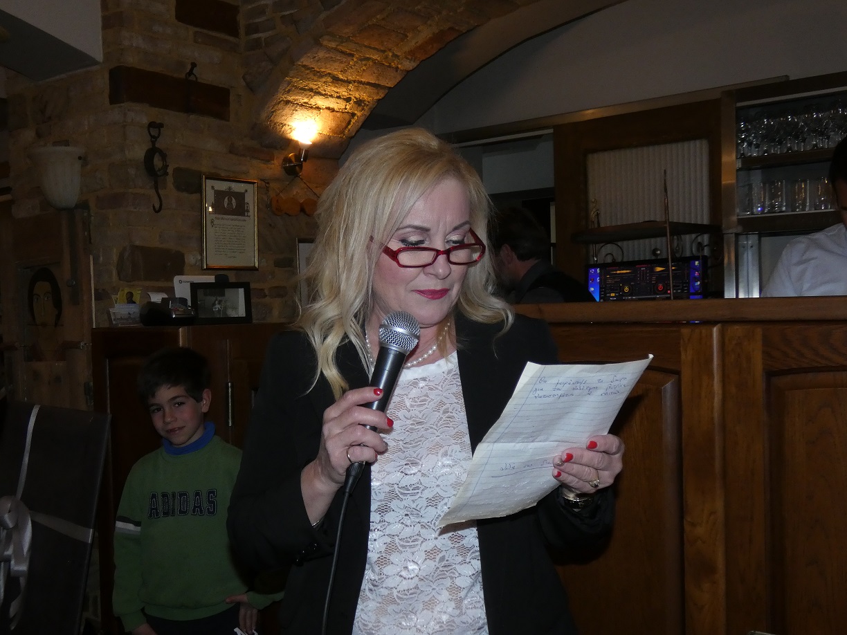 Η Πρόεδρος του Συλλόγου Γυναικών, κυρία Μαίρη Απ. Ζαπαντιώτη στον σύντομο χαιρετισμό της ευχήθηκε Καλή Χρονιά με υγεία και χαρές σε όλους και ευχαρίστησε για την αθρόα παρουσία τους τα μέλη και τους φίλους που παρευρέθηκαν.