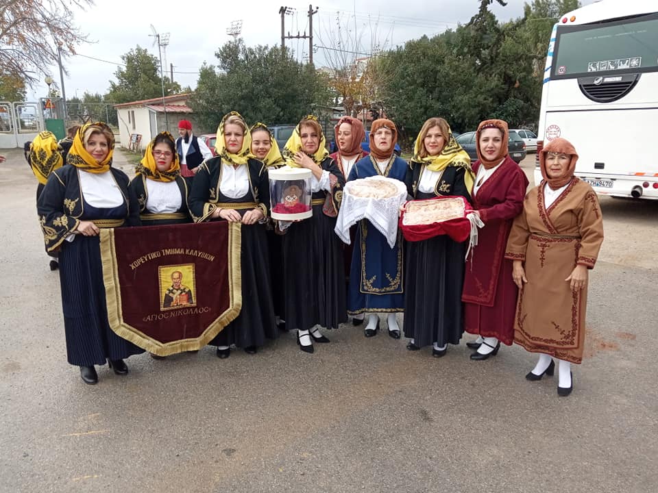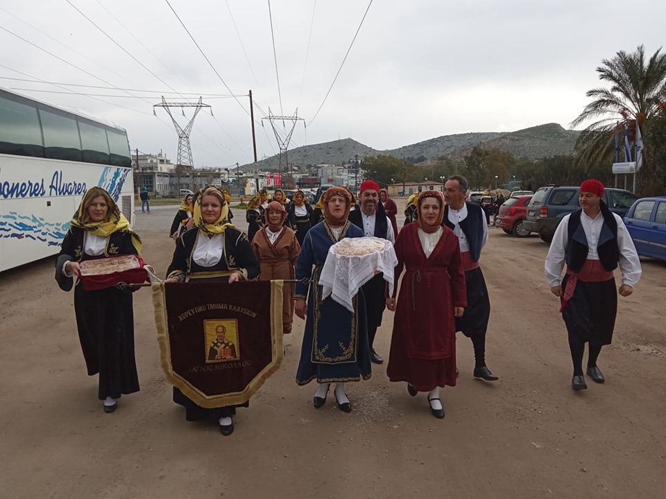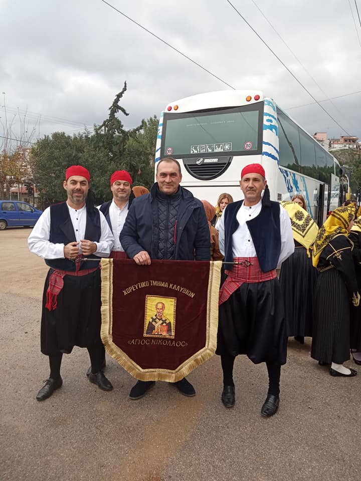 Το Χορευτικό τμήμα Καλυβίων «Άγιος Νικόλαος» με τη συμμετοχή μικρών και μεγάλων, χόρεψε μικρασιάτικους χορούς, ενώ οι κυρίες του χωριού μας πρόσφεραν στους διοργανωτές την παραδοσιακή Μπρεκόπιτα (βασιλόπιτα) της περιοχής μας!