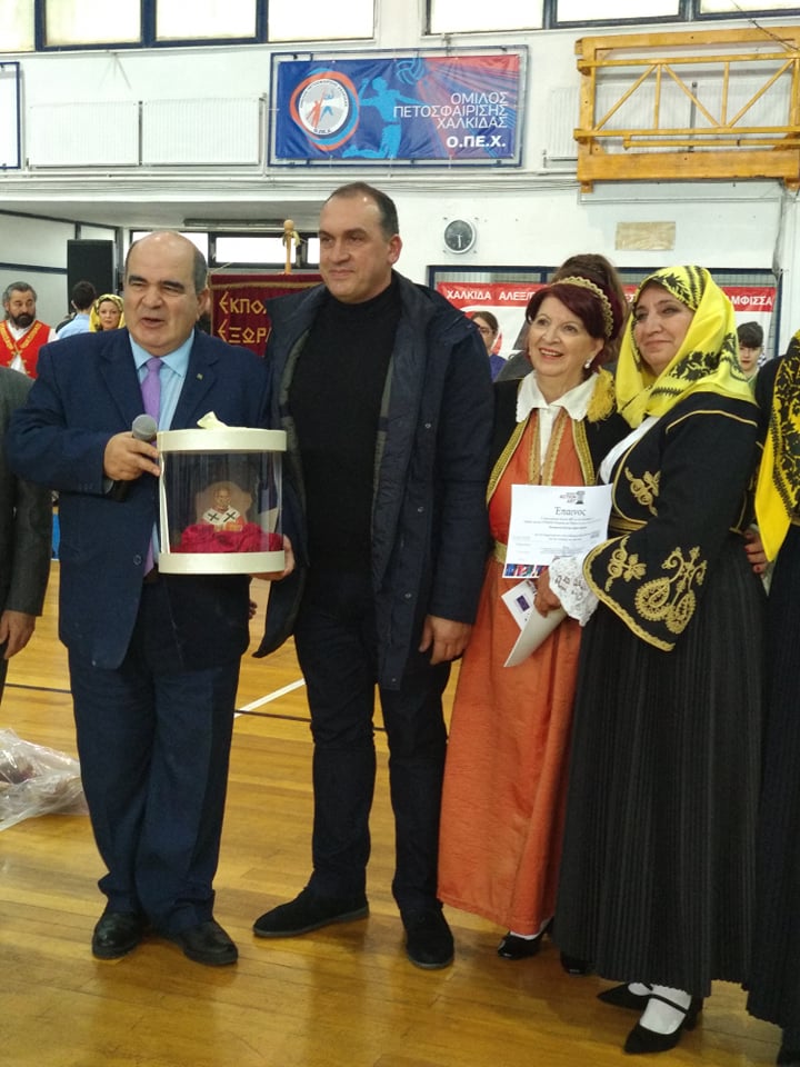 Στο τέλος της εκδήλωσης, τα μέλη του Χορευτικού Καλυβίων και ο Πρόεδρος της Κοινότητας Καλυβίων, κος Δημήτρης Αναστασίου, τίμησαν τον Πρόεδρο του Ομίλου της UNESCO Πειραιώς & Νήσων, κύριο Ιωάννη Μαρωνίτη προσφέροντάς του μια εικόνα του πολιούχου του χωριού μας, Αγίου Νικολάου, ενώ από την κα Θωμαή Δροσάτου, Σύμβουλο Πολιτισμού για τον Όμιλο της UNESCO, παρέλαβαν τιμητικό έπαινο για την συμμετοχή τους.