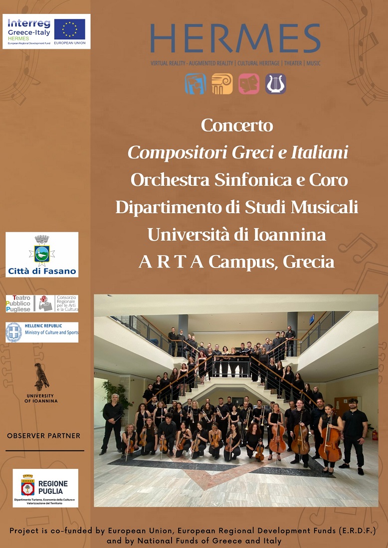 Να σημειώσουμε τέλος ότι, η εκδήλωση έγινε στα πλαίσια του έργου: “HERMES” - Αποκατάσταση Κληρονομιάς ως πολλαπλασιαστική Πολιτιστική Ενδυνάμωση σε Κοινωνικό πλαίσιο» το οποίο χρηματοδοτείται από το Διασυνοριακό Πρόγραμμα “INTERREG Ελλάδα-Ιταλία 2014-2020” και υλοποιείται με συγχρηματοδότηση της Ευρωπαϊκής Ένωσης και της Ελλάδας και μετέχουν σε αυτό το Εργαστήριο Γνώσης & Ευφυούς Υπολογιστικής (Kiclab) του Τμήματος Πληροφορικής και Τηλεπικοινωνιών σε συνεργασία με το Τμήμα Μουσικών Σπουδών του Πανεπιστημίου Ιωαννίνων, με έδρα την Άρτα.