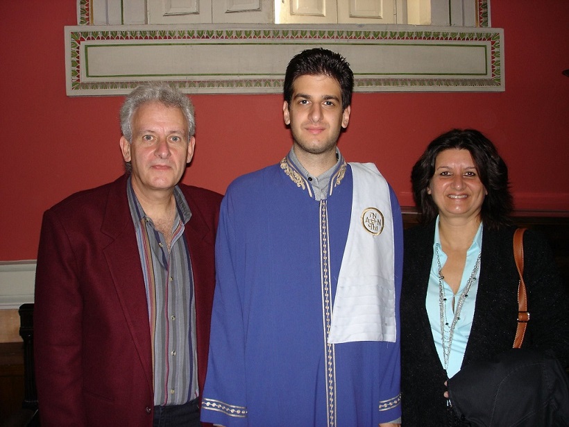 Για την επιτυχία του στις πανελλαδικές εξετάσεις του χορηγήθηκε τον Ιανουάριο του 2014 από την Ελληνοαμερικανική Ένωση πλήρης υποτροφία για σπουδές στο Hellenic American University, όπου είναι τελειόφοιτος στον τομέα των ανώτερων θεωρητικών και της Σύνθεσης, στην τάξη του διαπρεπούς μουσικοσυνθέτη, μαέστρου και μέλους της Ακαδημίας Αθηνών Θόδωρου Αντωνίου. Σπούδασε, τέλος, πιάνο στην τάξη του Σάββα Ζαφειρόπουλου, στο κεντρικό εκπαιδευτήριο του Εθνικού Ωδείου, απ’ όπου και έλαβε το Δίπλωμα Πιάνου τον Ιανουάριο του 2018 (Άριστα Παμψηφεί και 1ο Βραβείο).