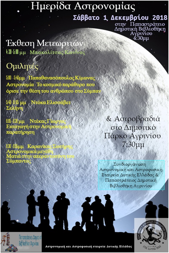 6:05 – 6:30 μ.μ. Ντέκας Γιώργος – Γραμματέας της Αστρονομικής και Αστροφυσικής Εταιρείας Δυτικής Ελλάδας.