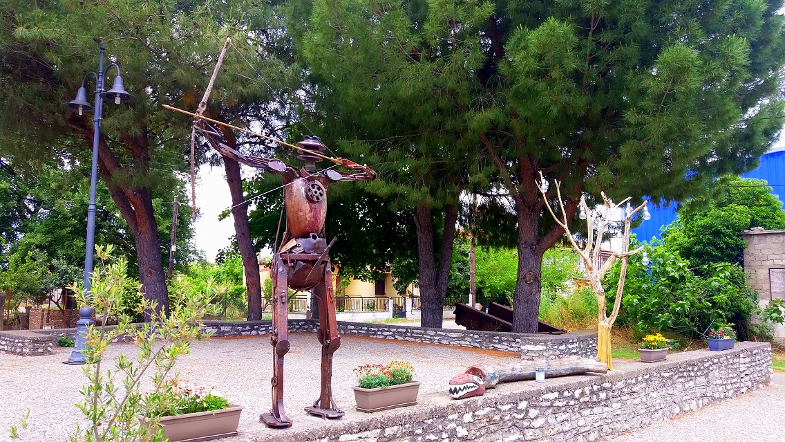 Σε μια-δυο μέρες το έργο του αυτοδίδακτου δημιουργού Δημήτρη Μαλεσιάδα ολοκληρώθηκε και στήθηκε στην πλατεία του χωριού, απέναντι από τον Άτλαντα και τις ξύλινες μορφές, κοντά σε αρχαίες Μέδουσες και σε φαγιούμ, όλα αντικείμενα και δημιουργήματα, που οδηγούν τον θεατή-επισκέπτη στη χώρα του μύθου και της φαντασίας!
