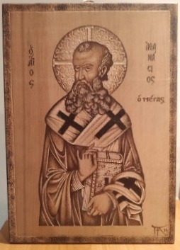 Άγιος Αθανάσιος ο Μέγας, (πυρογραφία σε ξύλο οξιάς)