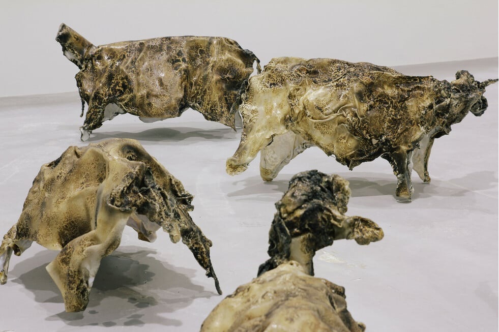 Τη δουλειά του Θωμά την παρακολούθησα με ενδιαφέρον και στα εργαστήρια των μεταπτυχιακών φοιτητών της ΑΣΚΤ, όπου εξέθετε καμένα πλαστικά σε μορφή προβάτου, ασπρόμαυρα κουφάρια, απομεινάρια μιας μαζικής καταστροφής, επίσης φτιαγμένα από λευκές πλαστικές καρέκλες. Μετά ήρθε η πανδημία και τα πάντα πήραν απρόβλεπτους δρόμους.