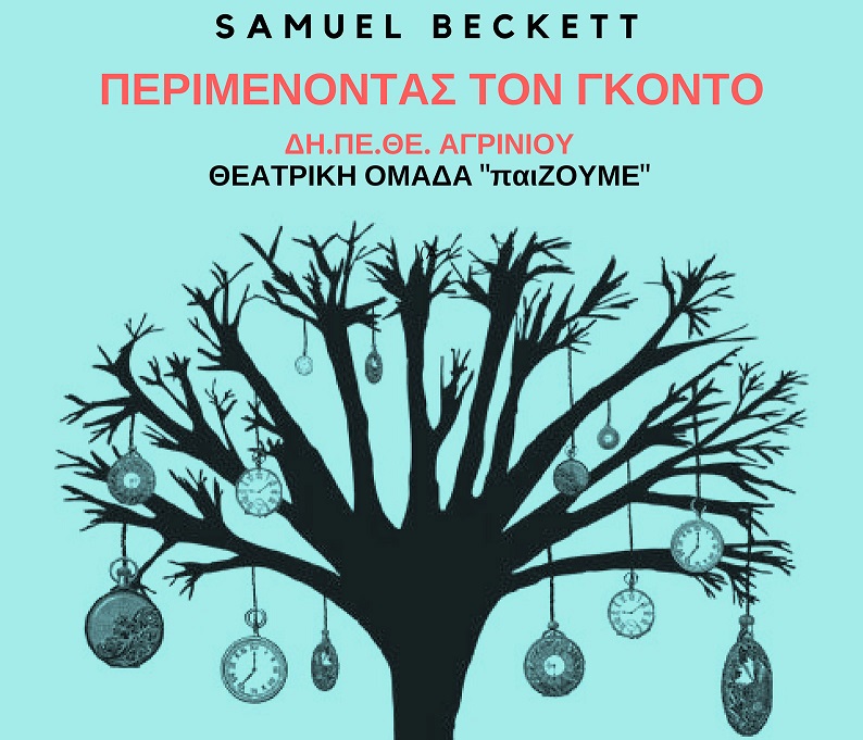 Το ΔΗ.ΠΕ.ΘΕ. Αγρινίου και η Θεατρική Ομάδα «παιΖΟΥΜΕ» της Κ.Ε.Δ.Α παρουσιάζουν την παράσταση, τραγικωμωδία σε δύο πράξεις «ΠΕΡΙΜΕΝΟΝΤΑΣ ΤΟΝ ΓΚΟΝΤΟ» του Σάμιουελ Μπέκετ, την Παρασκευή 25, το Σάββατο 26, και την Κυριακή 27 Μαΐου 2018 στις 9.15 μ.μ. στην Αίθουσα του Δημοτικού Θεάτρου.