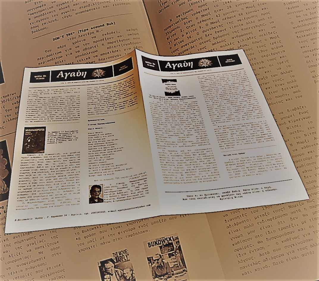 ΒΑΣΙΛΗΣ: Η έκδοση του έντυπου free press προέκυψε ως κάτι φυσικό. Μας αρέσει να δημιουργούμε, βρίσκουμε ευχαρίστηση στο να προσφέρουμε και όταν έχουμε την βοήθεια και τη στήριξη φίλων σε αυτό, δεν μπορεί παρά να προκύψουν όμορφα πράγματα. Την επιμέλεια την έχω αναλάβει ο ίδιος, με τις όσες γνώσεις κατέχω, για τη συγκέντρωση όμως του περιεχομένου συνδράμει στην προσπάθεια και ο καλός φίλος Κώστας Παπαπάνος, απευθυνόμενοι και οι δύο σε ανθρώπους που αγαπούν τη λογοτεχνία σε όλες τις μορφές της, είτε από τη μεριά του συγγραφέα είτε του αναγνώστη. Παρουσιάζουμε αγαπημένα βιβλία, παλαιότερα και νέα, συγγραφείς γνωστούς στο ευρύ κοινό, αλλά και άγνωστους, κείμενα στοχασμού, ποίηση, καθώς και δράσεις του βιβλιοπωλείου, παρουσιάσεις βιβλίων, συζητήσεις κ.τ.λ., που έχουν πραγματοποιηθεί είτε είναι προγραμματισμένες να συμβούν. Φαντάζομαι επομένως πως η ανάδειξη της αξίας του βιβλίου και της ανάγνωσης προκύπτει αβίαστα. Όσο για την κινητοποίηση, ατομική ή συλλογική, είναι πάντα ευχής έργον.