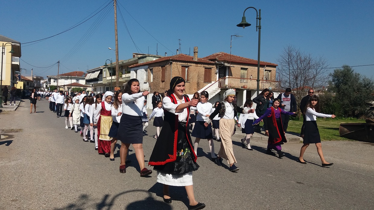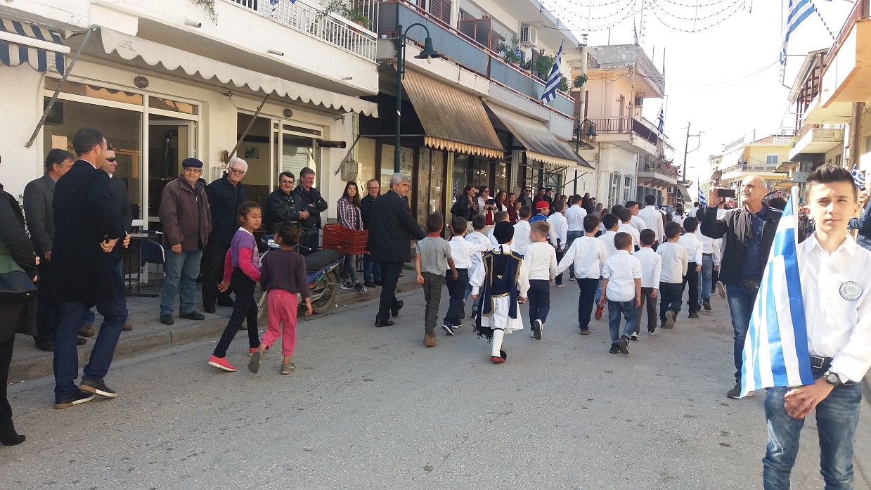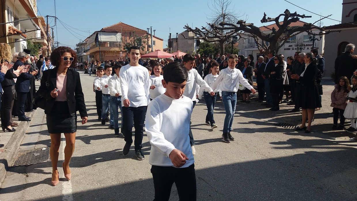 Αμέσως μετά, με μια ηλιόλουστη και λαμπερή μέρα, στους κεντρικούς δρόμους του χωριού μας, οι κάτοικοι παρακολούθησαν και χειροκρότησαν την παρέλαση των μαθητών του Νηπιαγωγείου, του Δημοτικού Σχολείου και του Γυμνασίου Καλυβίων, για να ολοκληρωθεί η πορεία στο Μνημείο των Πεσόντων, όπου τελέσθηκε η επιμνημόσυνη δέηση για τους πεσόντες υπέρ Πατρίδος.