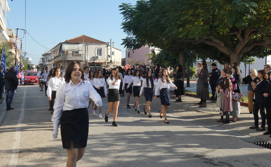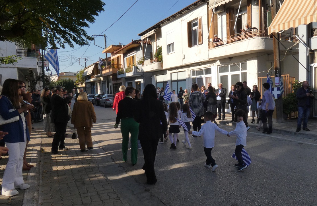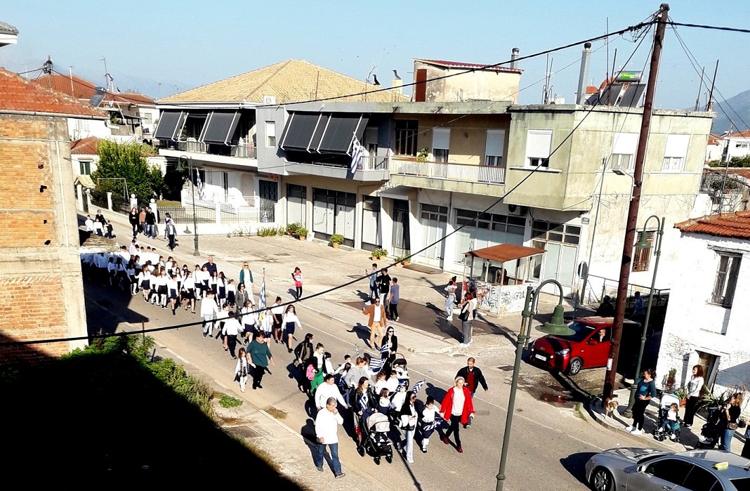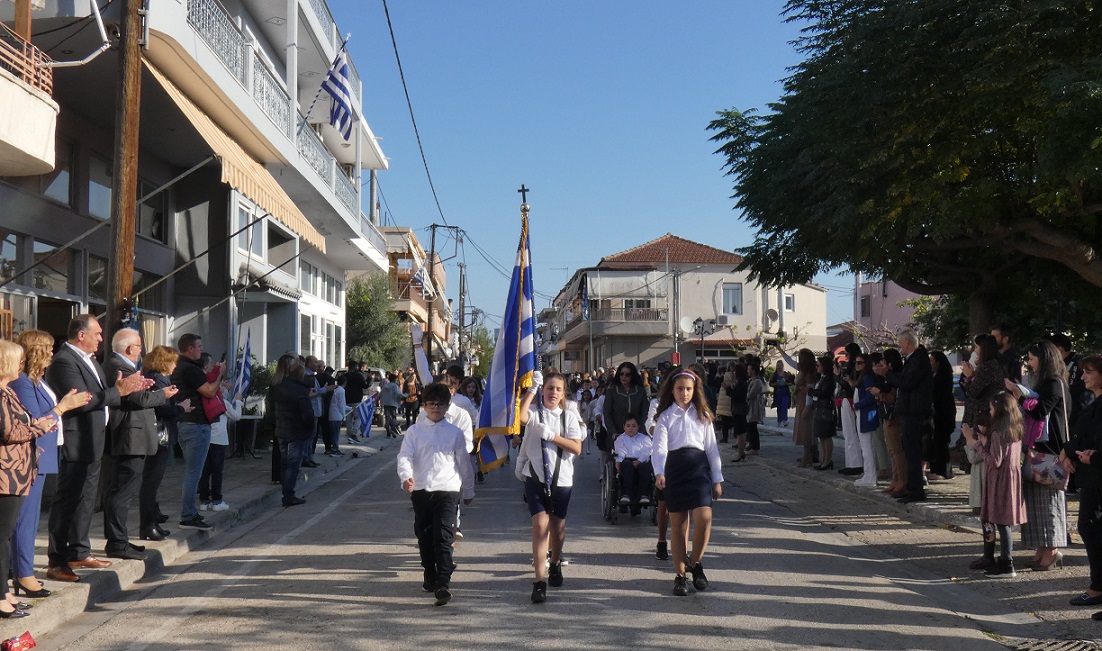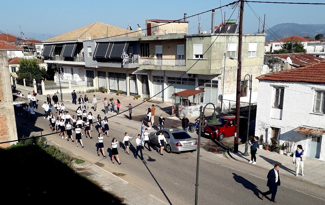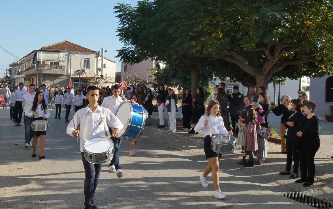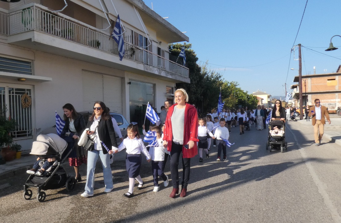 Αμέσως μετά, στους κεντρικούς δρόμους του χωριού μας οι κάτοικοι παρακολούθησαν την παρέλαση των μαθητών του Νηπιαγωγείου, του Δημοτικού Σχολείου και του Γυμνασίου Καλυβίων, για να ολοκληρωθεί η πορεία στο Μνημείο των Πεσόντων, όπου τελέσθηκε η επιμνημόσυνη δέηση για τους πεσόντες υπέρ Πατρίδος.