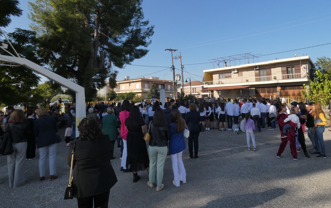 Τηρήθηκε ενός λεπτού σιγή σε μνήμη των ηρωϊκώς πεσόντων κατά τον ελληνο-ιταλικό πόλεμο του 1940-41 και στο τέλος της τελετής όλοι οι μαθητές τραγούδησαν τον Εθνικό μας ύμνο!