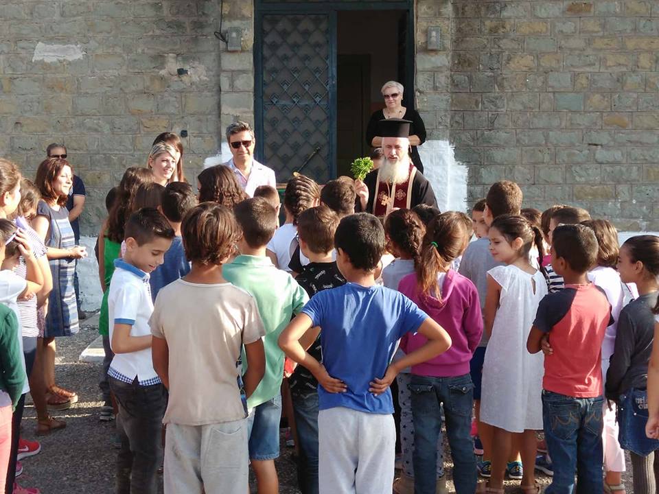 Ακολούθως στο 6τάξιο Δημοτικό Σχολείο, η νέα Διευθύντρια κα Χαρίκλεια Χριστοδούλου και το εκπαιδευτικό προσωπικό, υποδέχθηκαν με μεγάλη χαρά τα ¨πρωτάκια¨, αλλά και τους υπόλοιπους μαθητές, που συνοδεύονταν από τους γονείς τους, ενώ ο πατήρ Θεοδόσης ευλόγησε με το αγιασμένο νερό όλους τους μαθητές και τους δασκάλους τους και τους ευχήθηκε να έχουν πάντα τη Θεία Φώτιση για να τα προστατεύει και να τα καθοδηγεί.