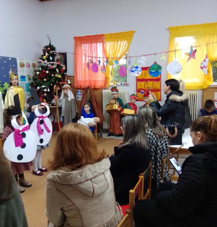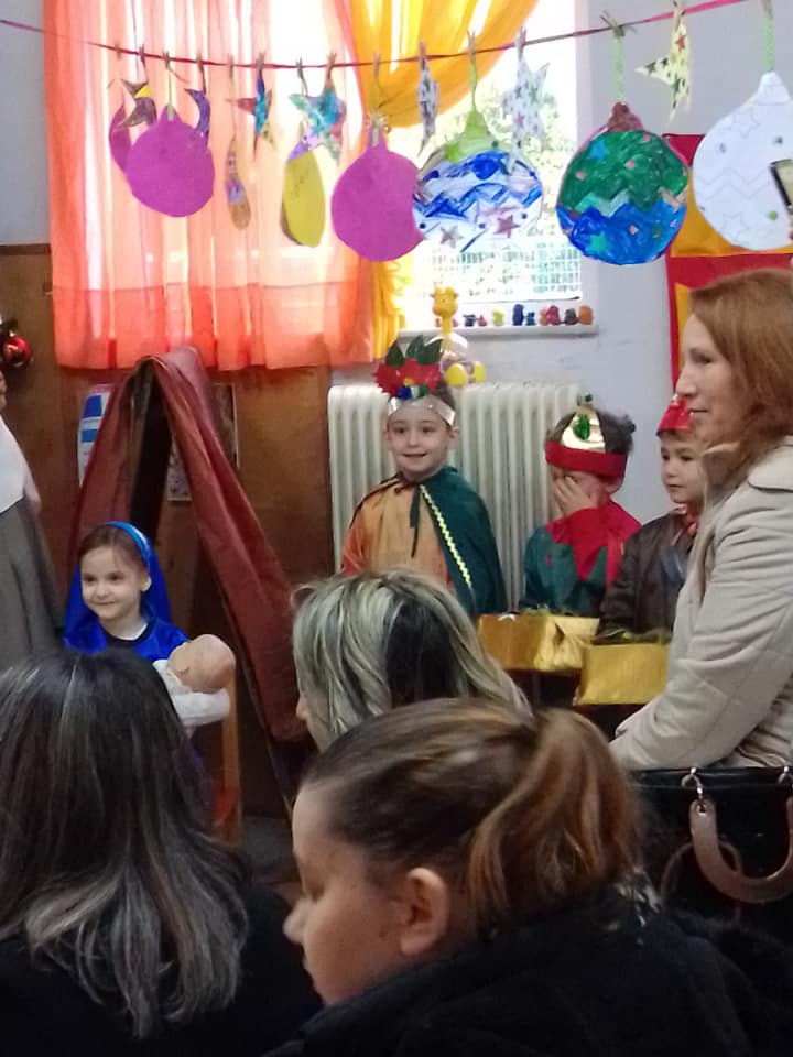 Τα παιδάκια είπαν χριστουγεννιάτικα τραγουδάκια, τα παραδοσιακά κάλαντα και παρουσίασαν σε θεατρικό σκετσάκι, τη φάτνη με τον μικρό Χριστό, την Παναγία και τον Ιωσήφ αλλά και τους Μάγους που τον επισκέφτηκαν για να του φέρουν τα δώρα!