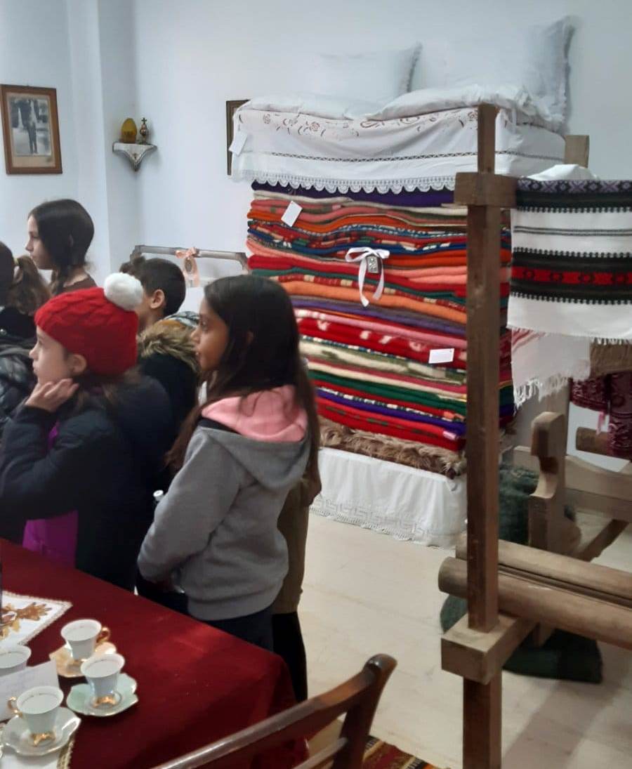 Κατά τη διάρκεια της επίσκεψης οι μικροί μαθητές είχαν την ευκαιρία να ξεναγηθούν και να δουν παλιά αντικείμενα όπως τον αργαλειό, τον γιούκο, πολλά υφαντά και κεντήματα, παλιά οικιακά σκεύη, το νυφικό κρεββάτι, αγροτικά εργαλεία κ.ά.