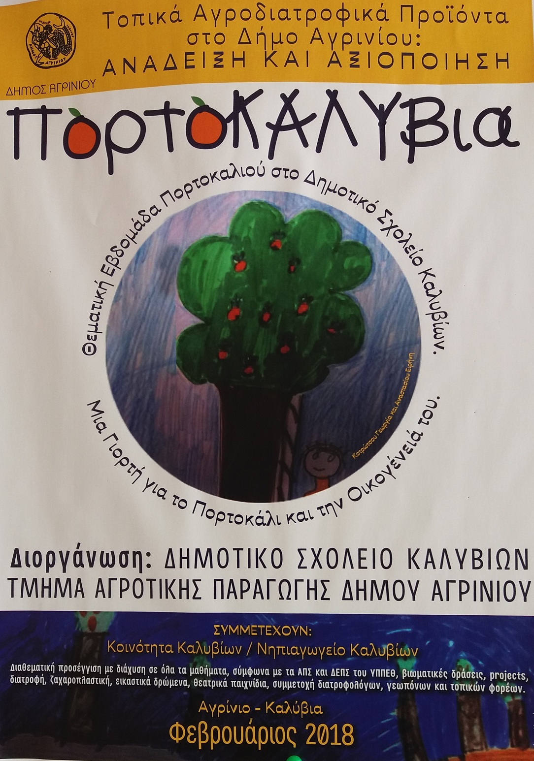 Σας περιμένουμε να γιορτάσουμε όλοι μαζί τη συγκομιδή των πορτοκαλιών, στην αυλή του σχολείου μας, την Κυριακή 11 Μαρτίου 2018, στις 11.30 το πρωί.