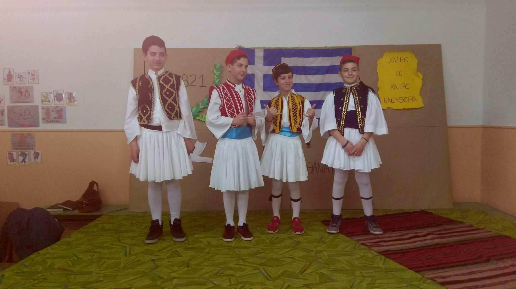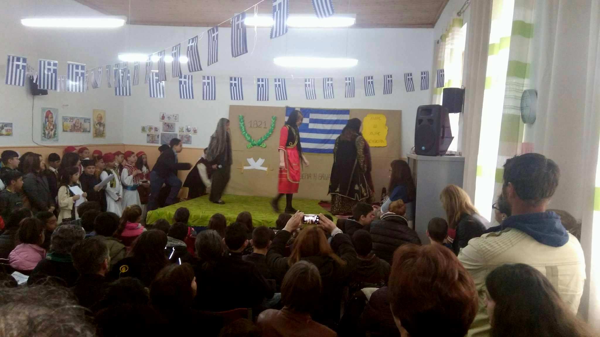 Στην αρχή της σχολικής γιορτής διαβάστηκε το χρονικό των ιστορικών γεγονότων της Ελληνικής Επανάστασης του 1821, ακολούθως ακούστηκαν τραγούδια από την χορωδία, με αποσπάσματα από τον Θούριο του Ρήγα Βελεστινλή, παραδοσιακά τραγούδια, ποιήματα και τα θεατρικά δρώμενα ¨Το κρυφό σχολειό¨, ¨Οι κλέφτες¨ & ¨Οι Μεσολογγίτισες¨ που αποδόθηκαν από μαθητές και μαθήτριες του σχολείου.