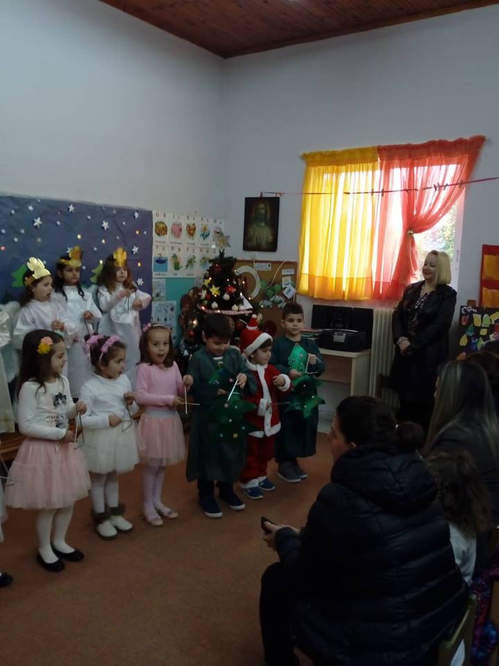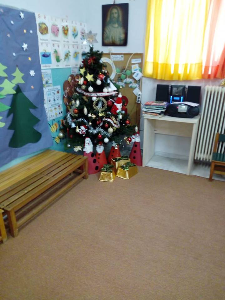 Όλες τις προηγούμενες ημέρες προετοιμάστηκε η μικρή γιορτή και όλα τα παιδιά έφτιαξαν στολίδια, χριστουγεννιάτικες κατασκευές, στόλισαν το χριστουγεννιάτικο δέντρο και φώτισαν με λαμπιόνια το σχολείο τους.