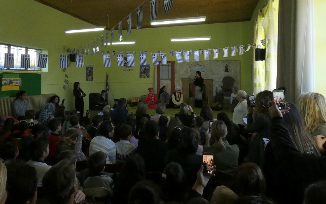 Στο Δημοτικό Σχολείο Καλυβίων, σε μια κατάμεστη αίθουσα, πραγματοποιήθηκε το πρωί η εορταστική εκδήλωση που ήταν αφιερωμένη στην επέτειο της 28ης Οκτωβρίου 1940, με τη συμμετοχή εκπαιδευτικών και μαθητών του σχολείου καθώς και με την παρουσία πολλών γονέων.
