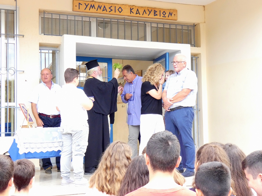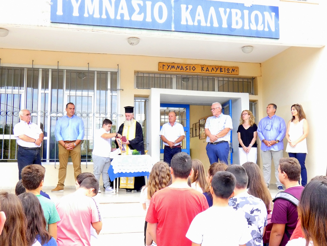 Στον αγιασμό παρέστησαν, ο Πρόεδρος της Κοινότητας Καλυβίων, Δ. Αναστασίου, ο κοινοτικός σύμβουλος Γ. Αντωνόπουλος και πολλοί γονείς.