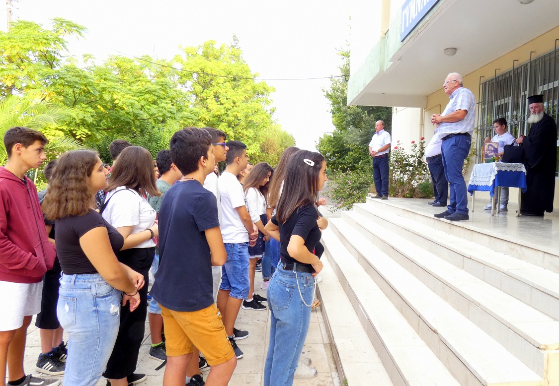 Τον αγιασμό τέλεσε ο πάτερ Θεοδόσης Αθανασόπουλος, ενώ το καλωσόρισμα στους μαθητές και τις ευχές του για καλή σχολική χρονιά απεύθυναν σε όλους, ο Διευθυντής κ. Ευστάθιος Πίτσας και ο Σύλλογος Καθηγητών.