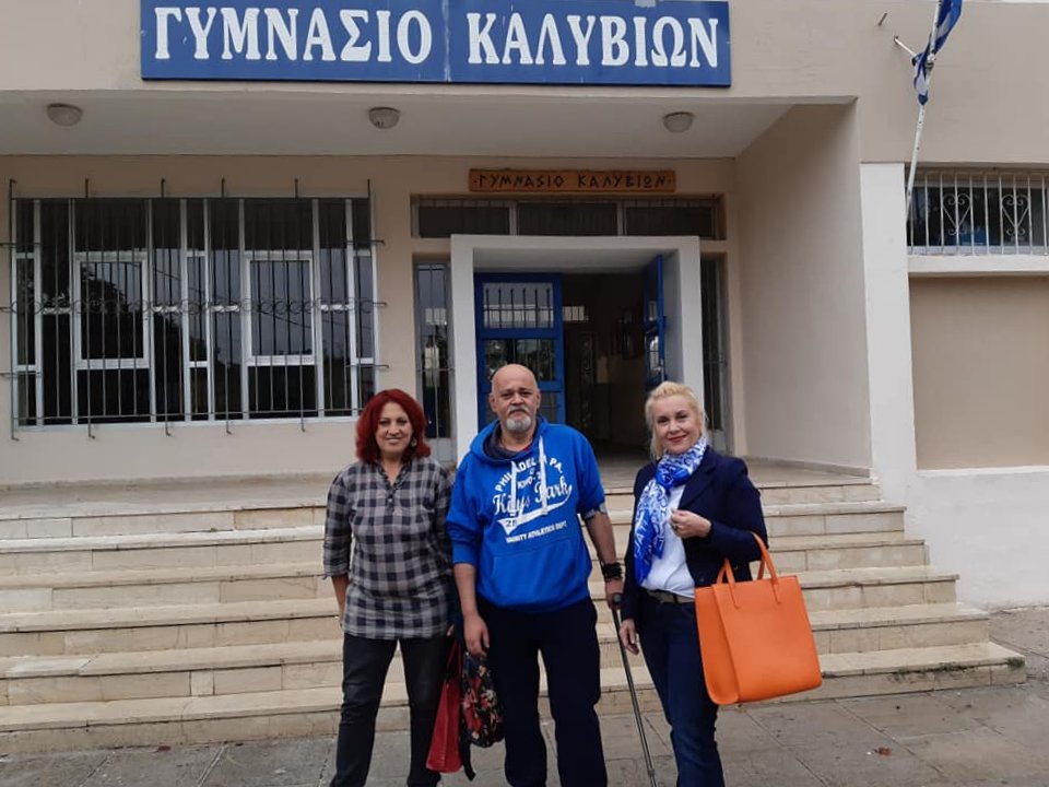 Ευχαριστούμε για τη θερμή υποδοχή και τη φιλοξενία τούς εκπαιδευτικούς και τα μαθητές του Γυμνασίου Καλυβίων».