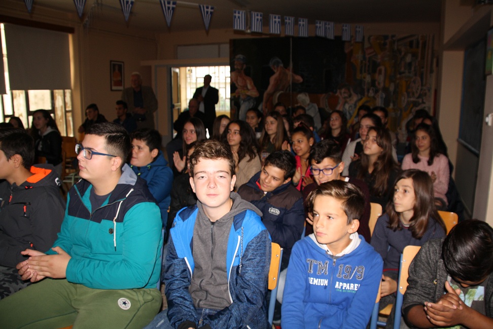Η τιμητική εκδήλωση ολοκληρώθηκε με τους τους μαθητές να τραγουδούν τον εθνικό μας ύμνο!