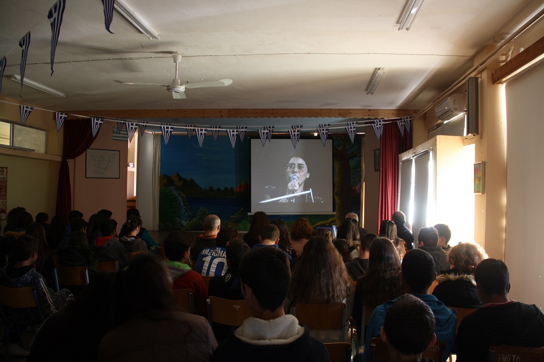 Κατόπιν έγινε παρουσίαση της εκδήλωσης, από τον εκπαιδευτικό κ. Χρήστο Σταμούλη, που είχε την επιμέλεια και την οργάνωσή της, με προβολή βίντεο, φωτογραφικού υλικού και τραγουδιών της εποχής εκείνης, καθώς και ομιλία του για την επίπτωση που είχε η εξέγερση στην πολιτική κατάσταση αμέσως μετά και τελικά την αποκατάσταση της Δημοκρατίας το καλοκαίρι του 1974.