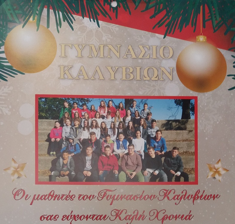 Το εορταστικό ημερολόγιο για το νέο έτος 2018, κυκλοφορεί αυτές τις μέρες από τους μαθητές του Γυμνασίου Καλυβίων, προκειμένου να ενισχυθούν οικονομικά, εκπαιδευτικές και πολιτιστικές δράσεις.