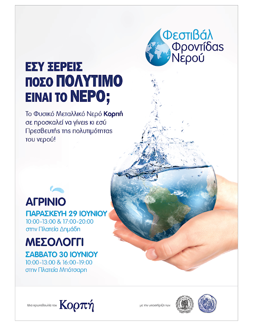 O επιτυχημένος θεσμός, «Φεστιβάλ Φροντίδας Νερού», που πραγματοποιείται κάθε χρόνο, από το 2010, στο εργοστάσιο του φυσικού μεταλλικού νερού Nestlé - Κορπή στο Μοναστηράκι Βόνιτσας, ξεκίνησε από σήμερα το ταξίδι του σε όλη την Ελλάδα. Πρώτη στάση ήταν το Αγρίνιο και αύριο Σάββατο το Μεσολόγγι!