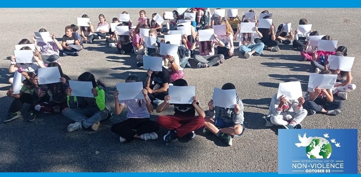 Στο πλαίσιο της Παγκόσμιας Ημέρα Μη Βίας (γενέθλια ημέρα του Γκάντι), το Δημοτικό Σχολείο Καλυβίων πήρε θέση και φώναξε: «ΝΑΙ στην Ειρήνη, ΟΧΙ στον Πόλεμο» δημιουργώντας ένα ανθρώπινο σήμα Ειρήνης από τους μαθητές και τους εκπαιδευτικούς.