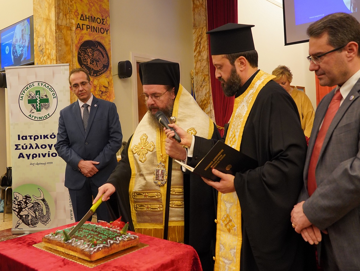 Η κοπή της Πρωτοχρονιάτικης Πίτας πραγματοποιήθηκε σήμερα Παρασκευή 12 Ιανουαρίου, στο Διοικητήριο της Π.Ε. Αιτωλοακαρνανίας, στο Μεσολόγγι, παρουσία του Περιφερειάρχη, Νεκτάριου Φαρμάκη, του Αντιπεριφερειάρχη της Π.Ε.του νομού μας, Αθανασίου Μαυρομάτη, πολιτικών, στρατιωτικών αρχών και αιρετών, ενώ ευλόγησε ο Σεβασμιώτατος Μητροπολίτης Αιτωλίας και Ακαρνανίας κ. Δαμασκηνός.