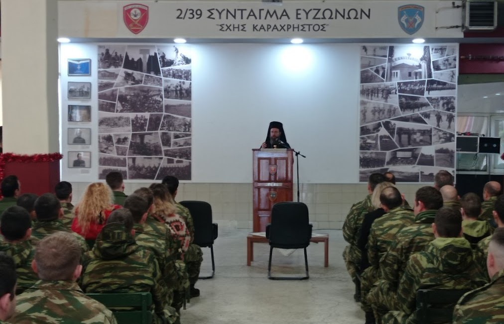 Το 2/39 Σύνταγμα Ευζώνων στην Ιερά Πόλη Μεσολογγίου επισκέφθηκε την Παρασκευή 22 Δεκεμβρίου 2023 ο Σεβασμιώτατος Μητροπολίτης Αιτωλίας και Ακαρνανίας κ. Δαμασκηνός, ο οποίος έγινε δεκτός από τον Ανώτερο Διοικητή Φρουράς Ιεράς Πόλεως Μεσολογγίου, ΑΝΧΗ (ΠΖ) κ. Παντελεήμονα Μπετσιά.