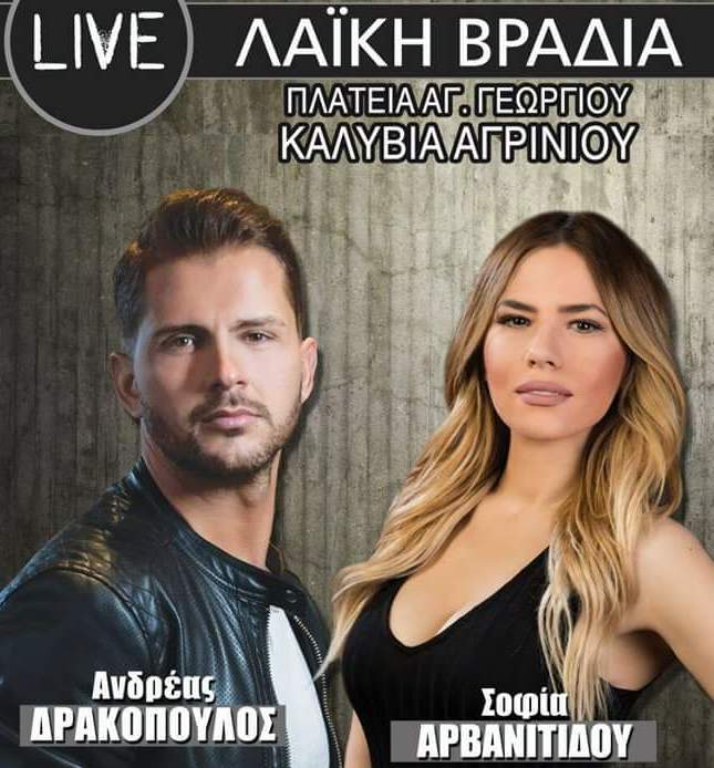 Μια ανεπανάληπτη μουσική λαϊκή βραδιά, ένα εντυπωσιακό live, παρουσίασαν χθες στην πλατεία του Αγ. Γεωργίου Καλυβίων, ο συμπατριώτης μας τραγουδιστής Ανδρέας Δρακόπουλος και η Σοφία Αρβανιτίδη, ενθουσιάζοντας το κοινό με τους ρυθμούς και το χορευτικό πρόγραμμα που πρόσφεραν μέχρι τις πρώτες πρωινές ώρες!